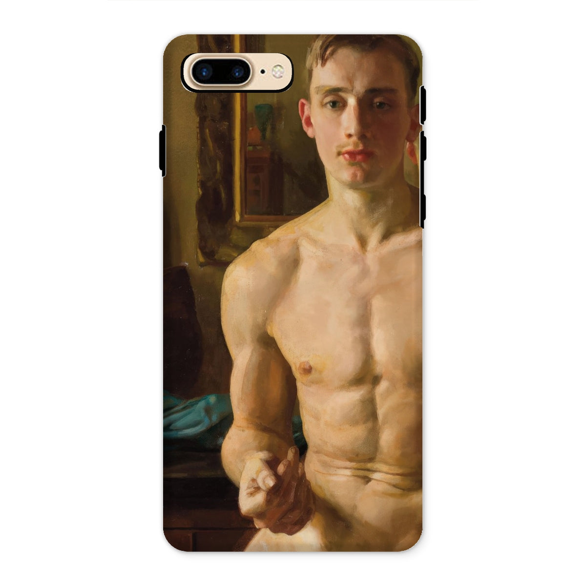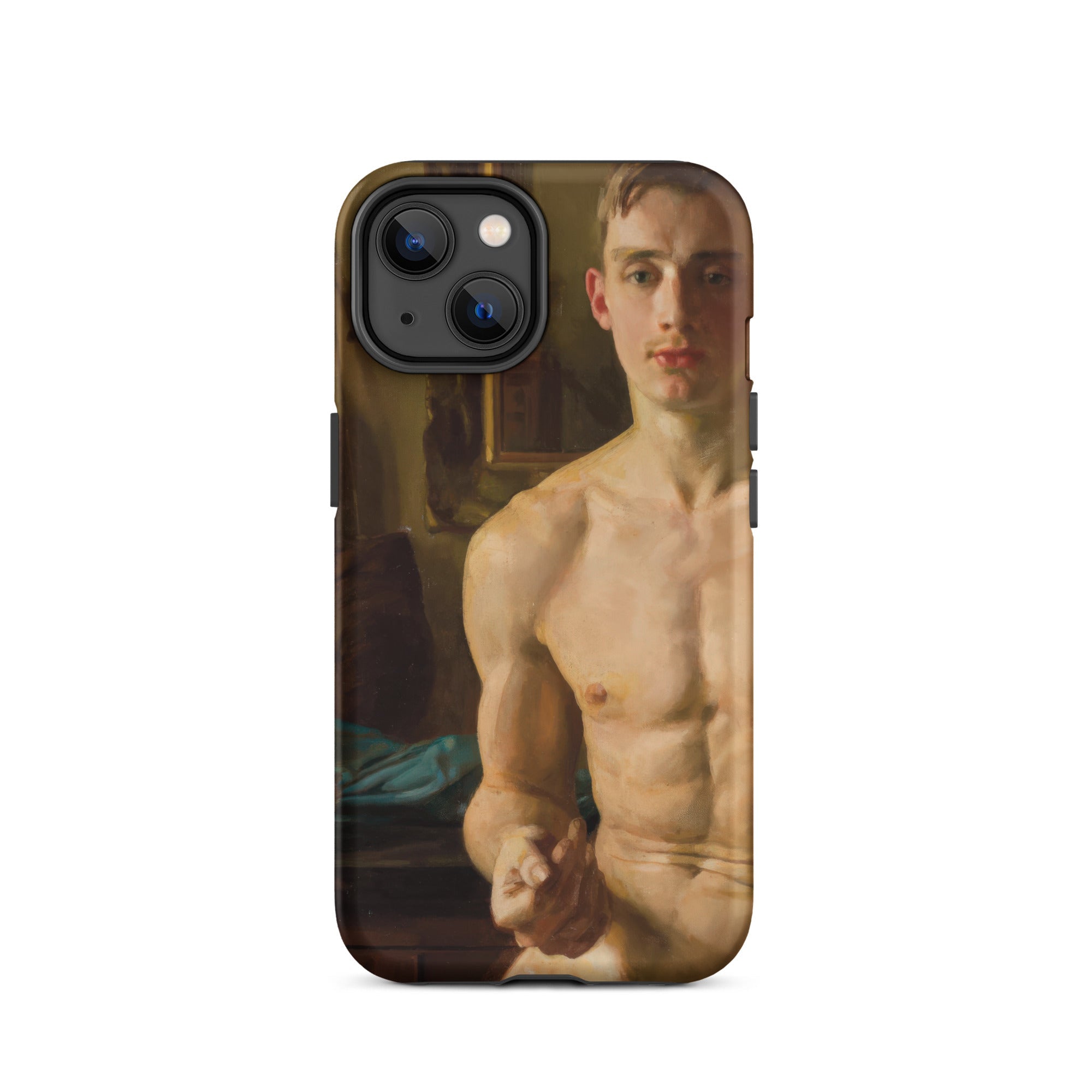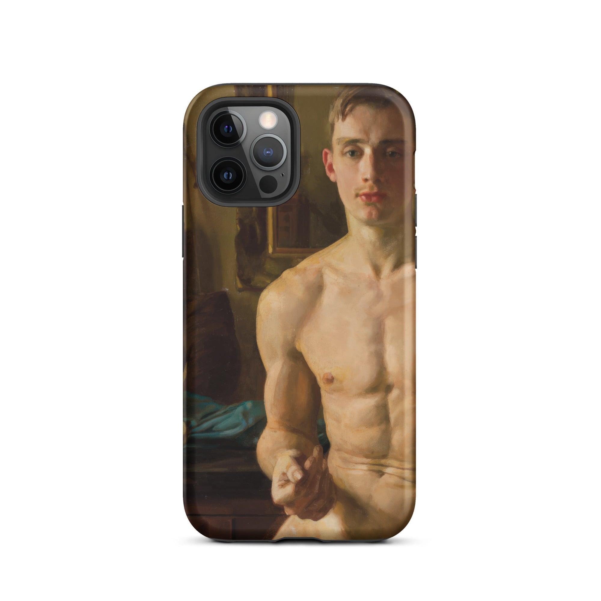Un corpo scolpito dalla luce, in bilico tra movimento e immobilità. Questa custodia per iPhone cattura Il Pugile di Konstantin Andreevich Somov, uno studio squisito nel realismo neoclassico, dove ogni pennellata venera la forma maschile nella sua espressione più poetica. I muscoli si increspano sotto una pelle di impasto dorato, mentre lo sguardo incrollabile del soggetto suggerisce una meditazione artistica sulla fragilità maschile, una tensione tra l'eroico e l'intimo.
