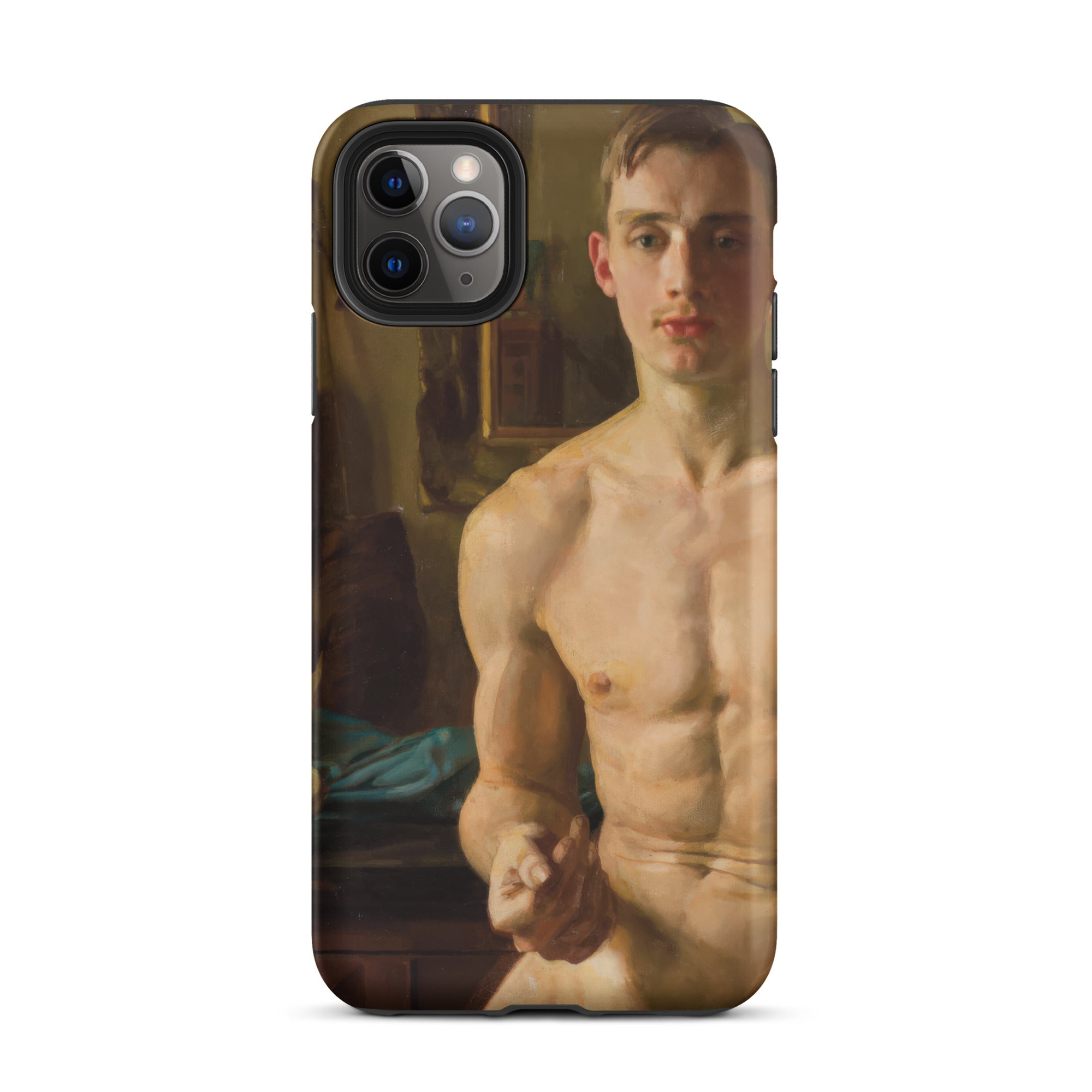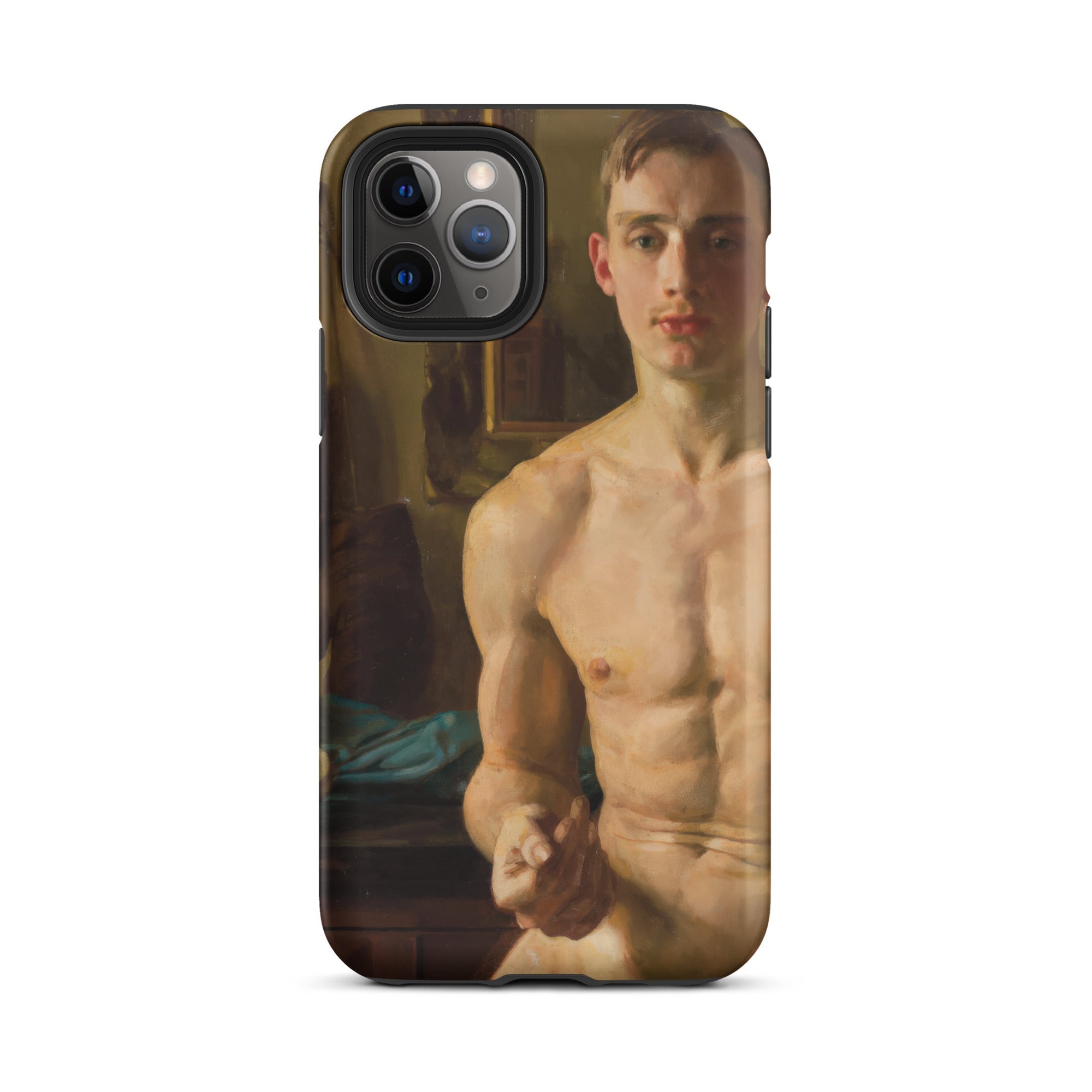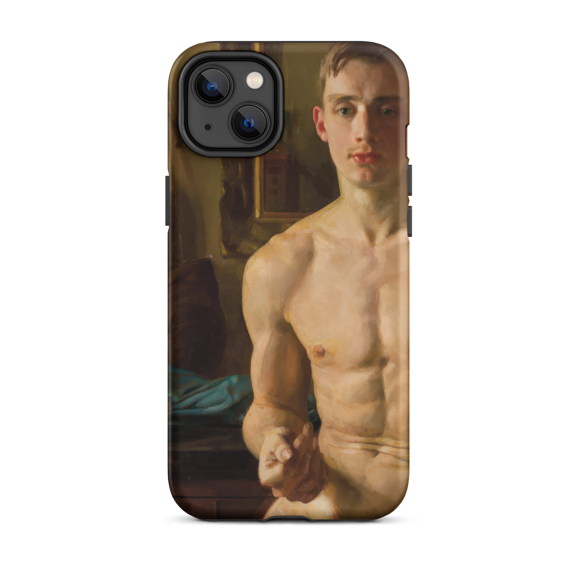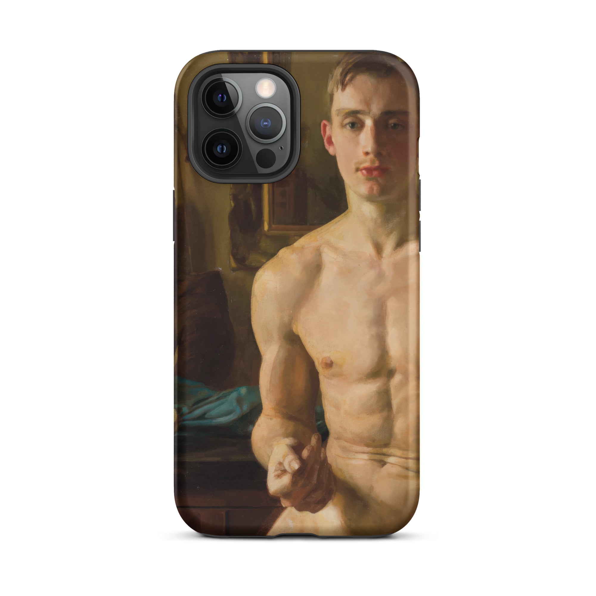 Un corpo scolpito dalla luce, in bilico tra movimento e immobilità. Questa custodia per iPhone cattura Il Pugile di Konstantin Andreevich Somov, uno studio squisito nel realismo neoclassico, dove ogni pennellata venera la forma maschile nella sua espressione più poetica. I muscoli si increspano sotto una pelle di impasto dorato, mentre lo sguardo incrollabile del soggetto suggerisce una meditazione artistica sulla fragilità maschile, una tensione tra l'eroico e l'intimo.