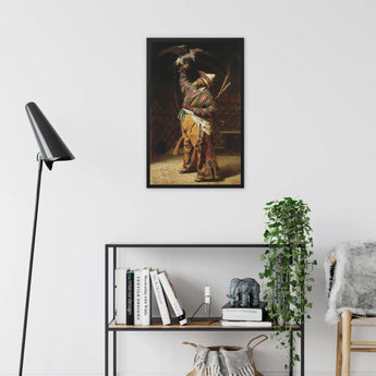 Ecco il sontuoso falconiere kirghiso, splendente nel suo abbigliamento vivace, immortalato dal pennello magistrale di Vasily Vereshchagin. Questa tela incorniciata ti trasporta nel cuore della cultura asiatica, dove tradizione e nobiltà si intrecciano. La veste colorata e intricatamente decorata del cacciatore e i pantaloni dorati catturano l'attenzione, mentre la sua postura fiera emana potere e abilità.