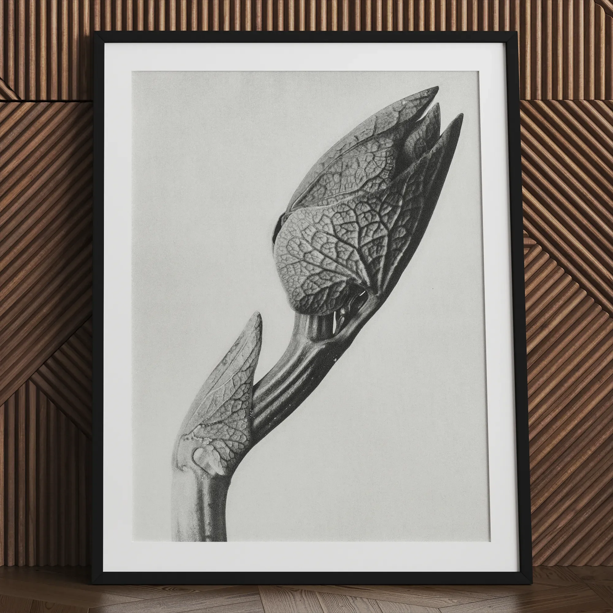 Stai guardando un capolavoro Karl Blossfeldt che eleva l'umile clematite di Aristolochia (wort di nascita) alla regalità botanica. Questa affascinante stampa in bianco e nero cattura il bocciolo dispiegabile della pianta con dettagli squisiti, trasformandolo in una meraviglia scultorea.