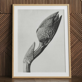 La macro pionieristica di BlossfeldtFotografia La tecnica rivela l'intricata venazione dellowort, le sue foglie si arricciano come la natura Art nouveau fiorire. I contrasti netti e la focus acuta tipici della serie "Art Forms in Nature" di Blossfeldt sono in mostra, invitandoti a perderti nella simmetria e nella struttura della pianta.