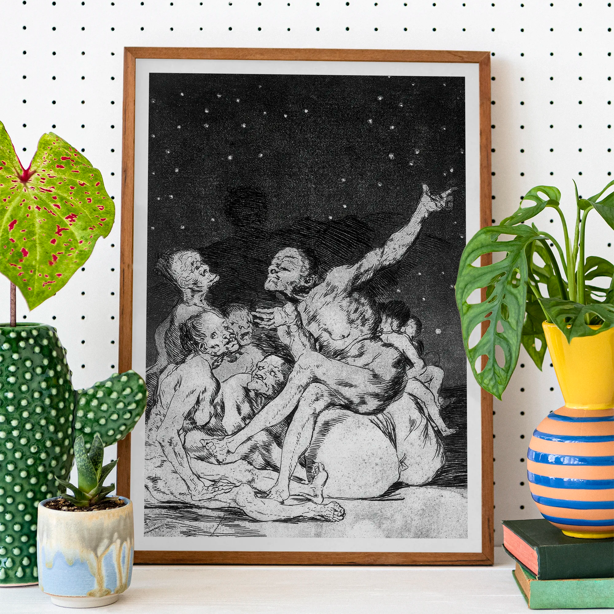Each stroke mocks the machinery of fear—the superstition that fed on hunger, repression, and desire. Yet the scene is tender, too: these creatures, stripped of illusion, grope toward survival.