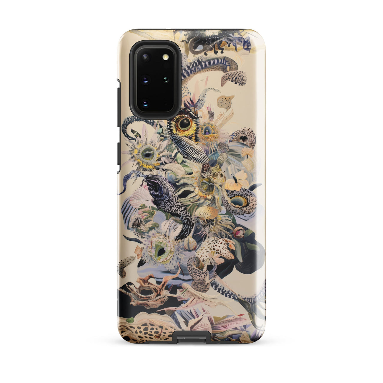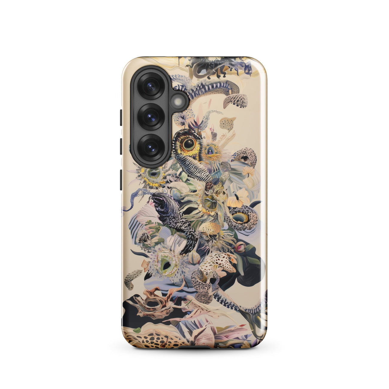 Un'insurrezione intricata di orchidee aliene, fiori con scaglie di serpente e involucri scheletrici invade questa custodia Samsung. Ogni viticcio si muta in qualcosa di nuovo: petali che si trasformano in pelle rettiliana, baccelli che fissano come occhi spalancati e fronde intrecciate che esplodono in arti insettoidi.