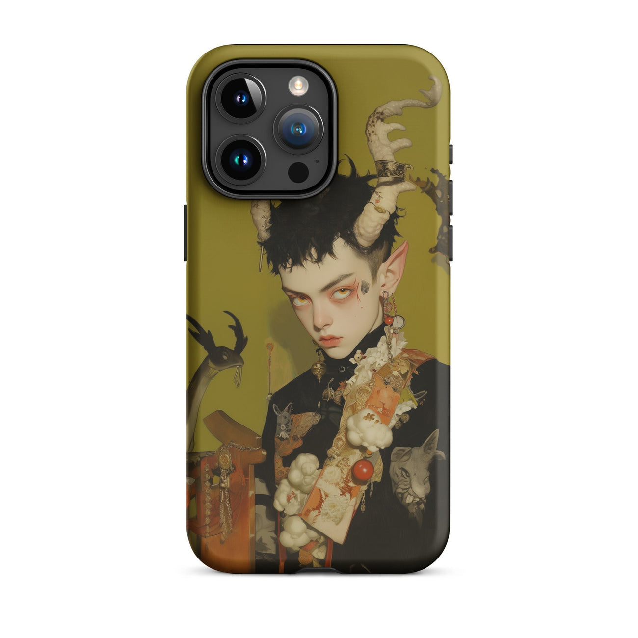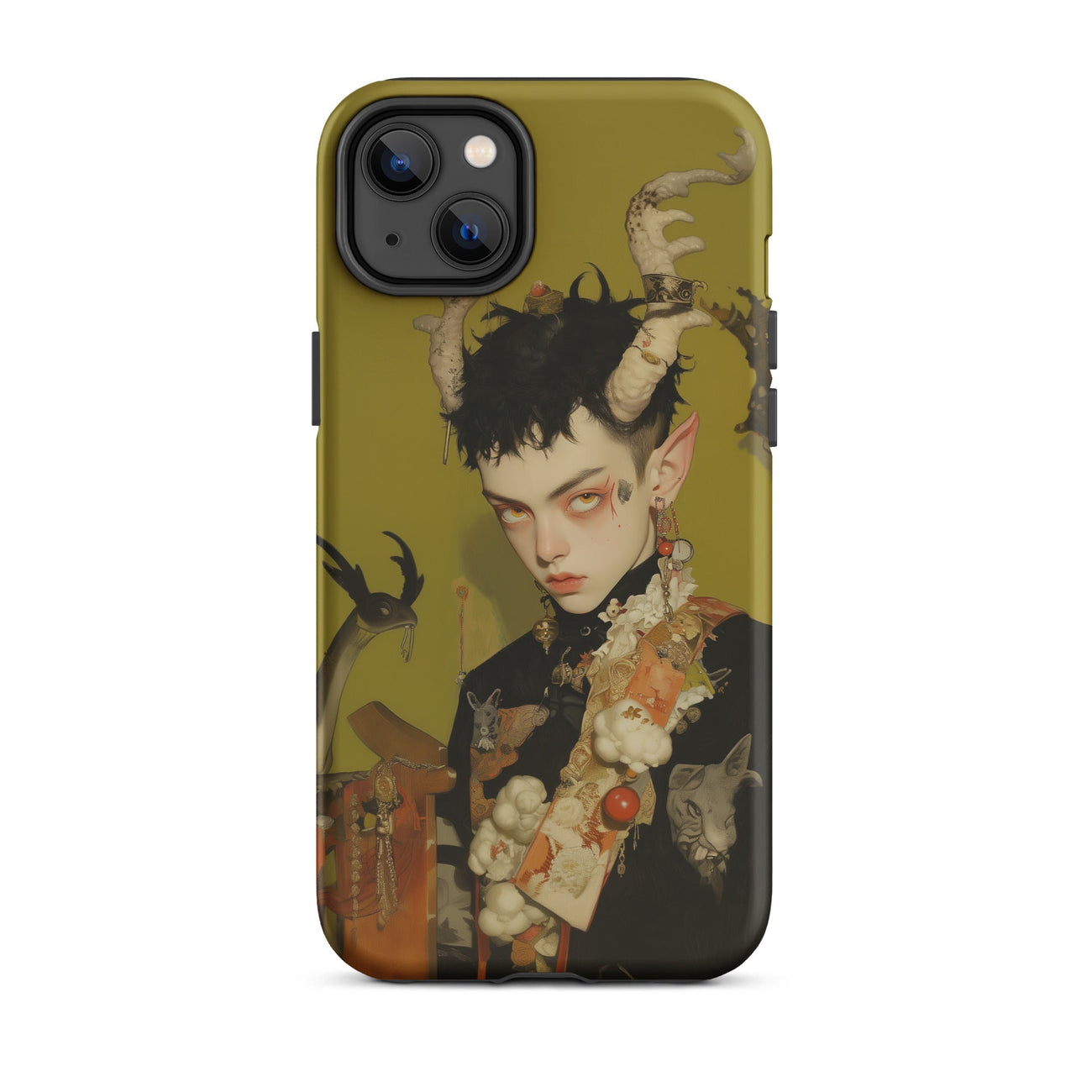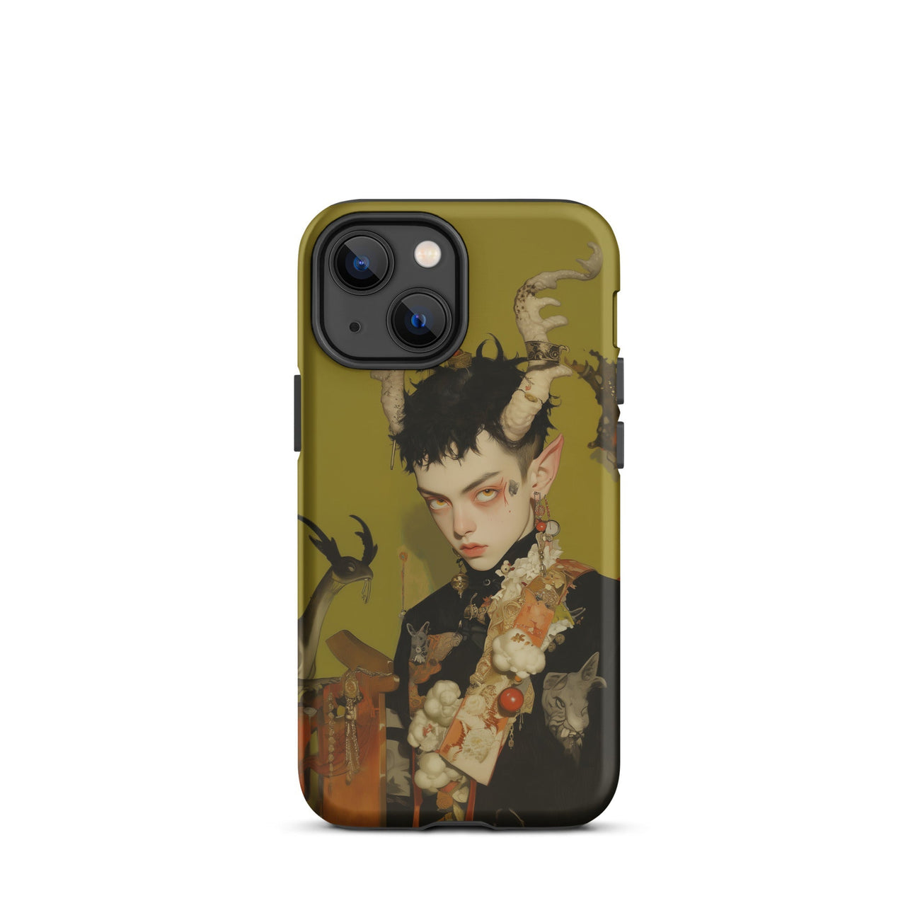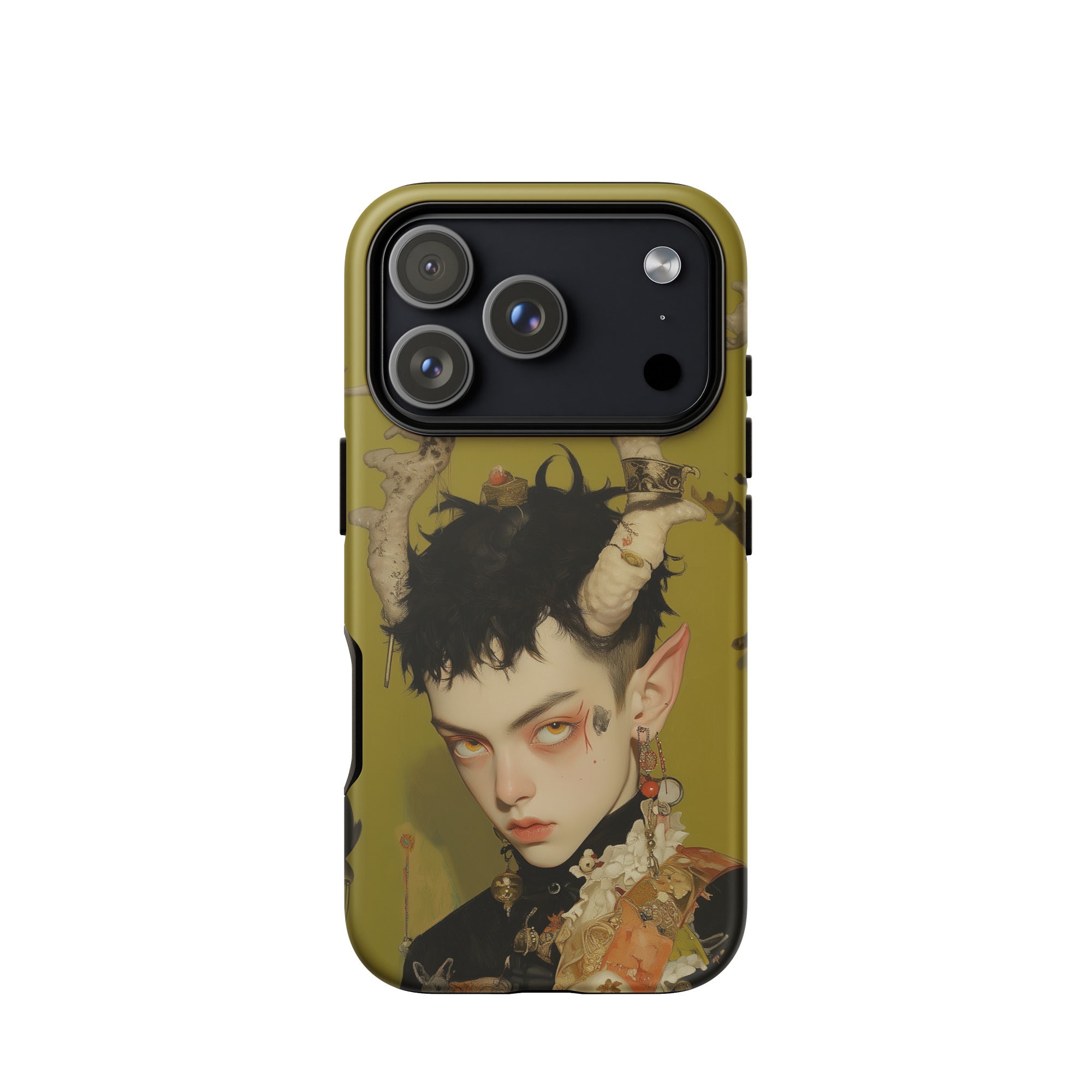 Questa custodia per iPhone è più di una protezione—è un pezzo dichiarativo per coloro che abbracciano gli elementi più oscuri e mistici dell'universo, fondendo funzionalità con la potenza grezza del surrealismo queer.