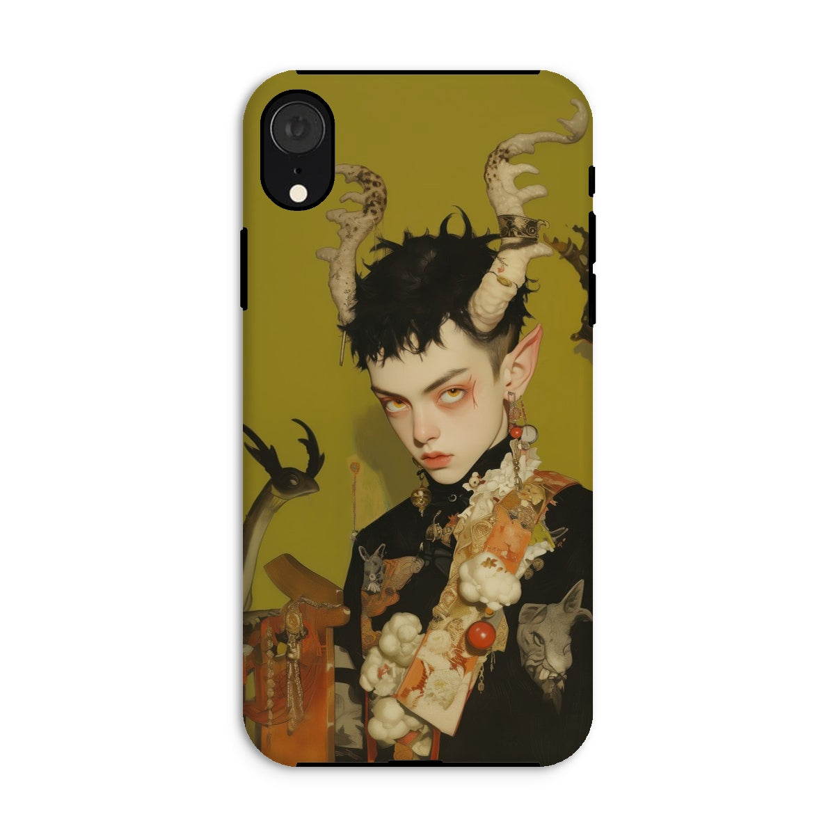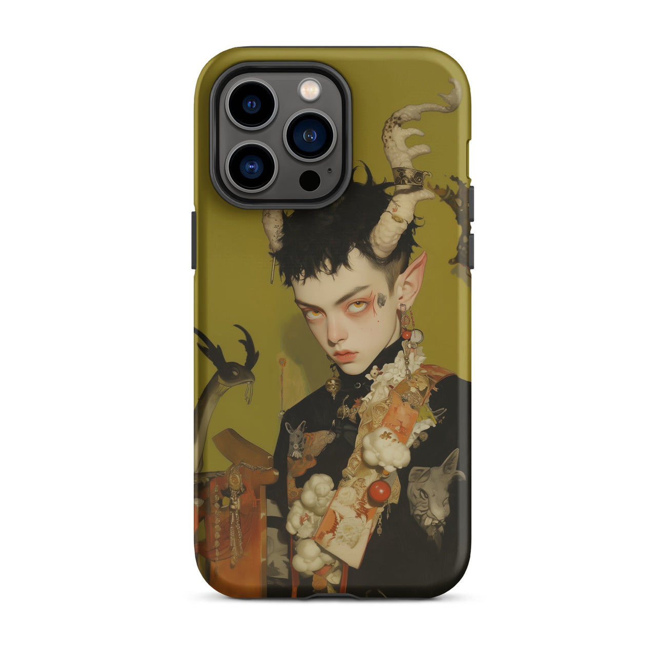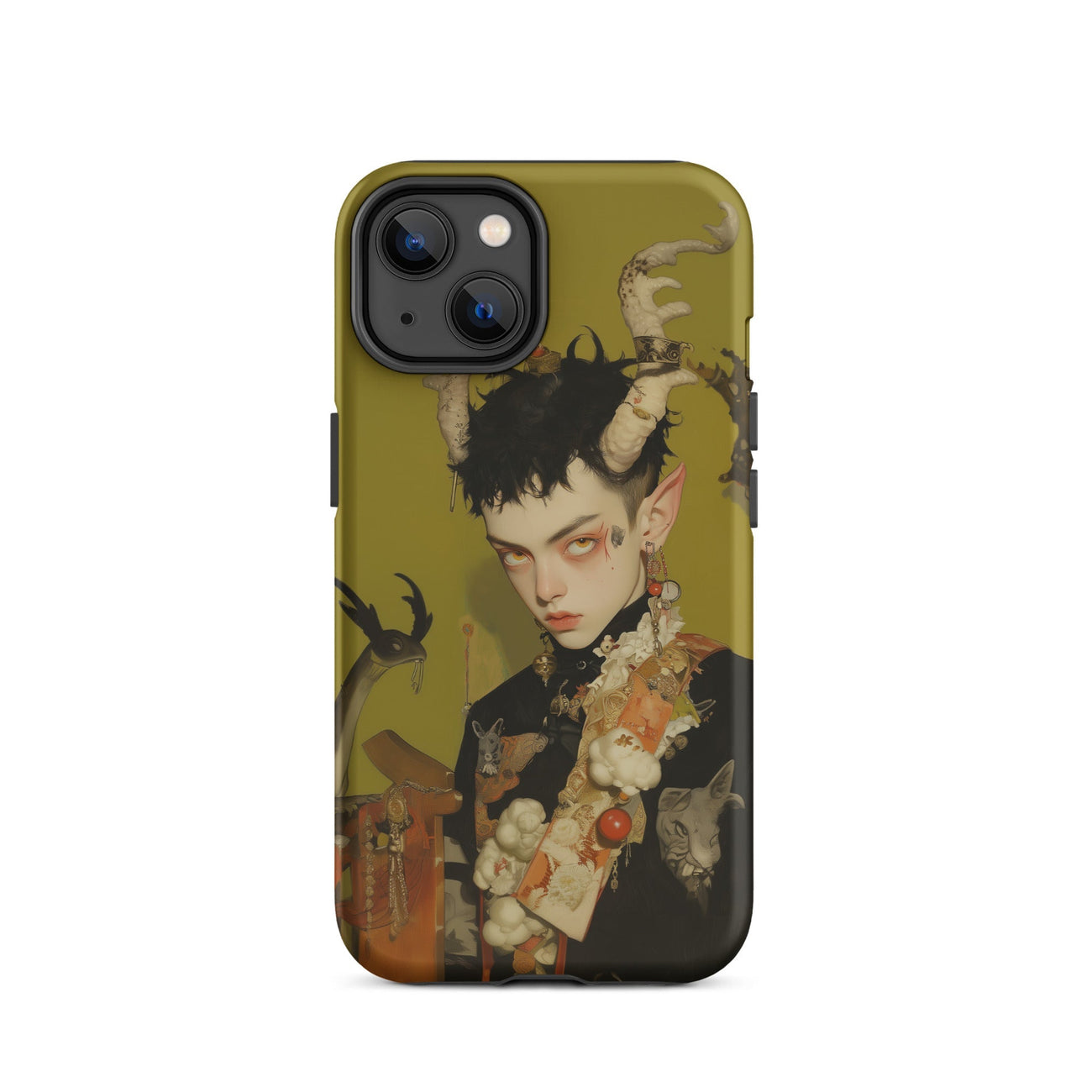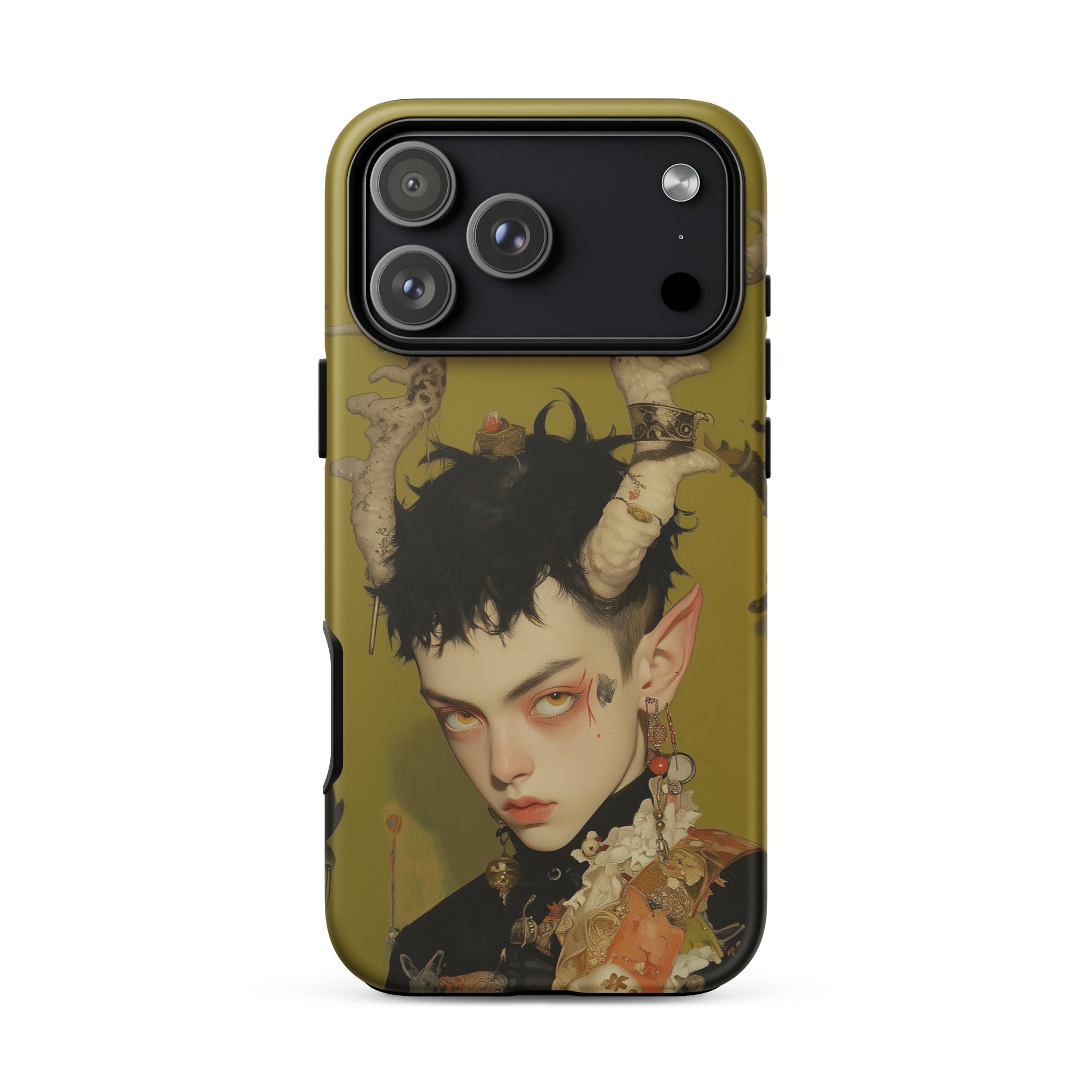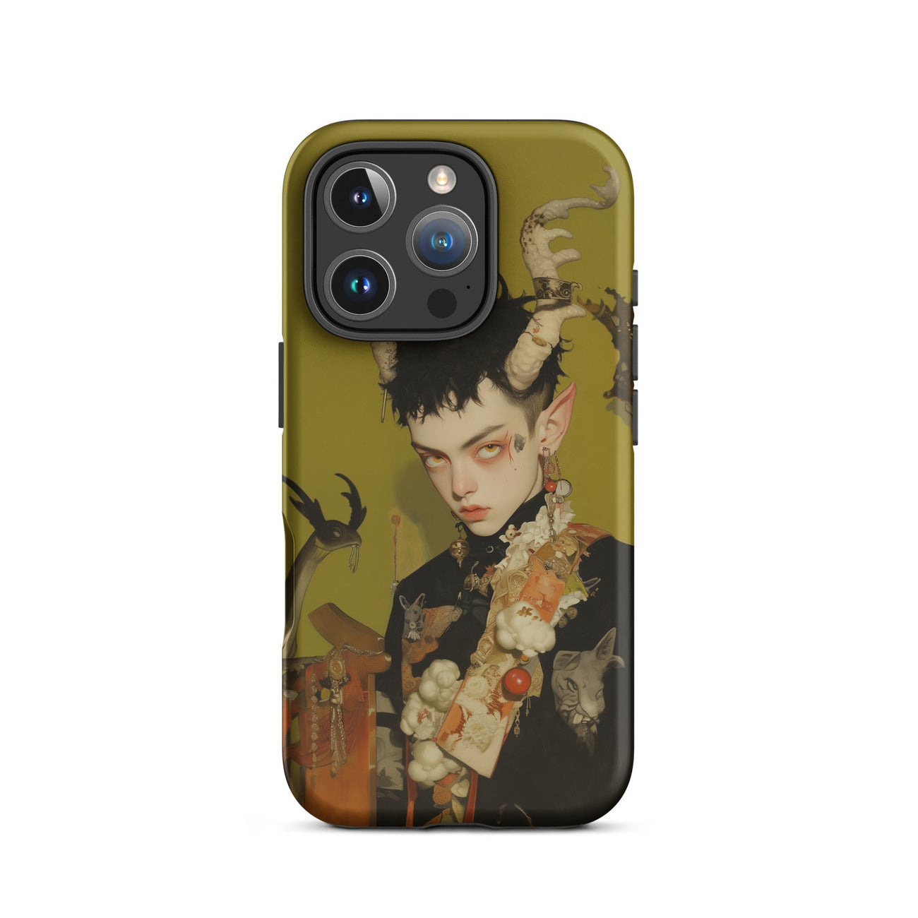 Questa custodia per iPhone è più di una protezione—è un pezzo dichiarativo per coloro che abbracciano gli elementi più oscuri e mistici dell'universo, fondendo funzionalità con la potenza grezza del surrealismo queer.