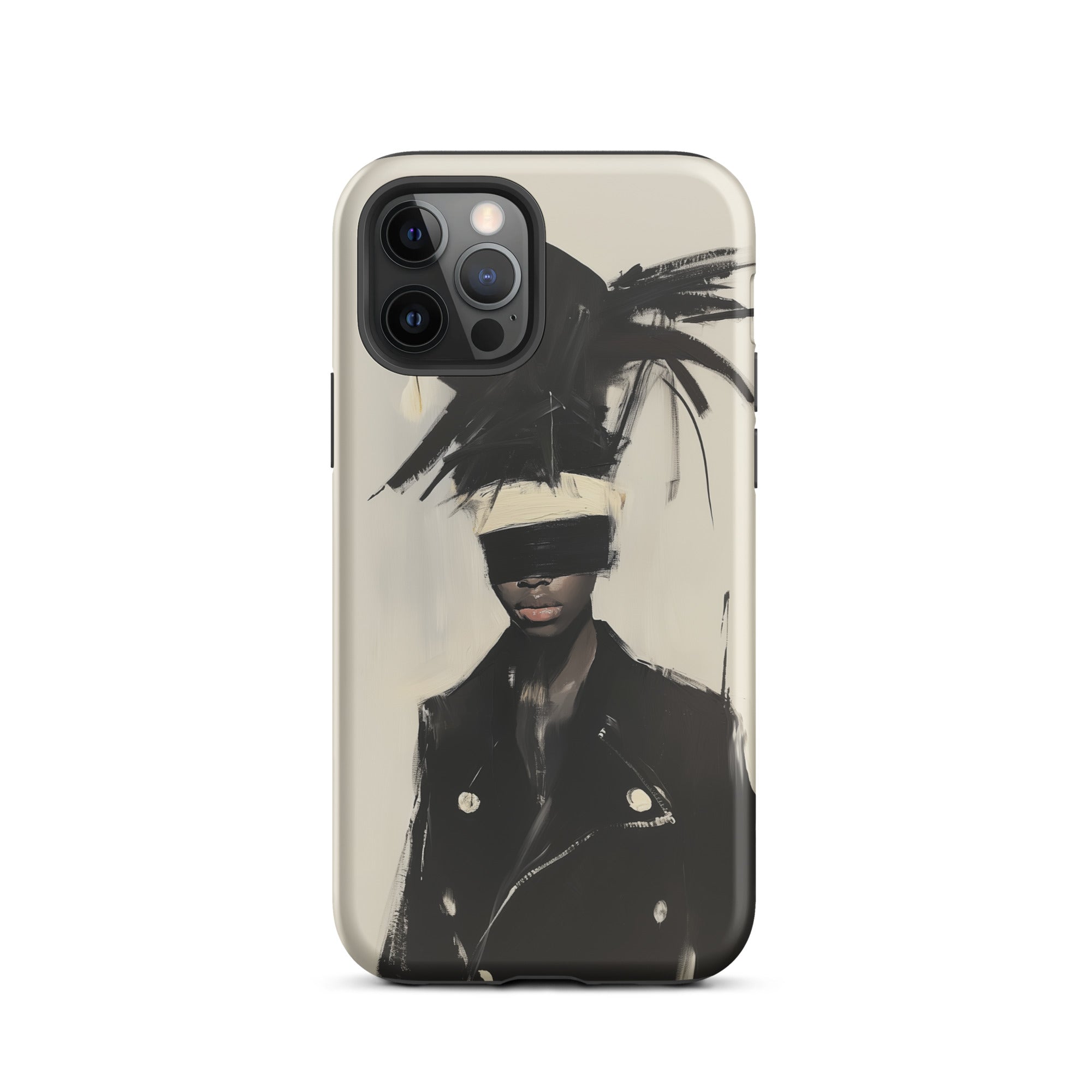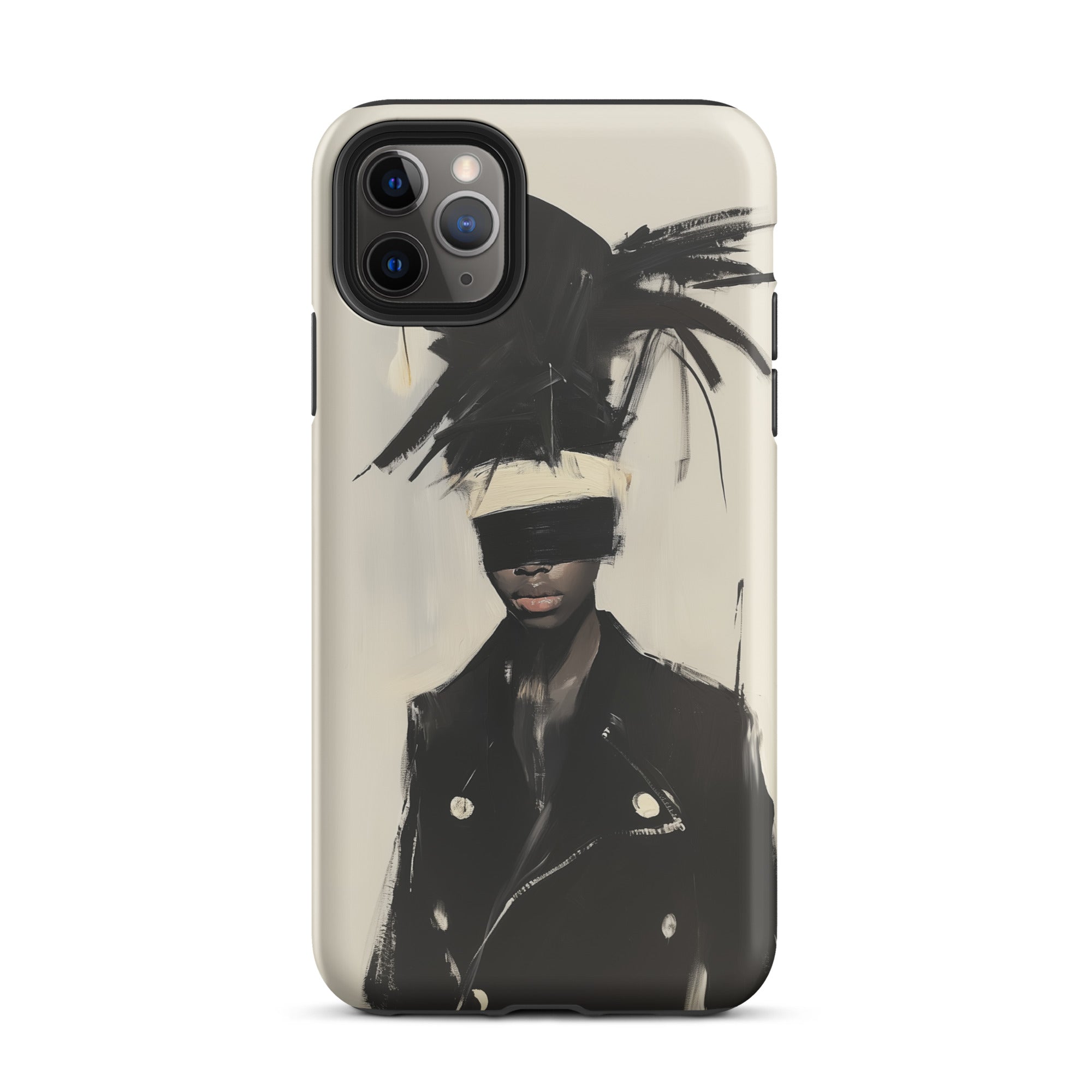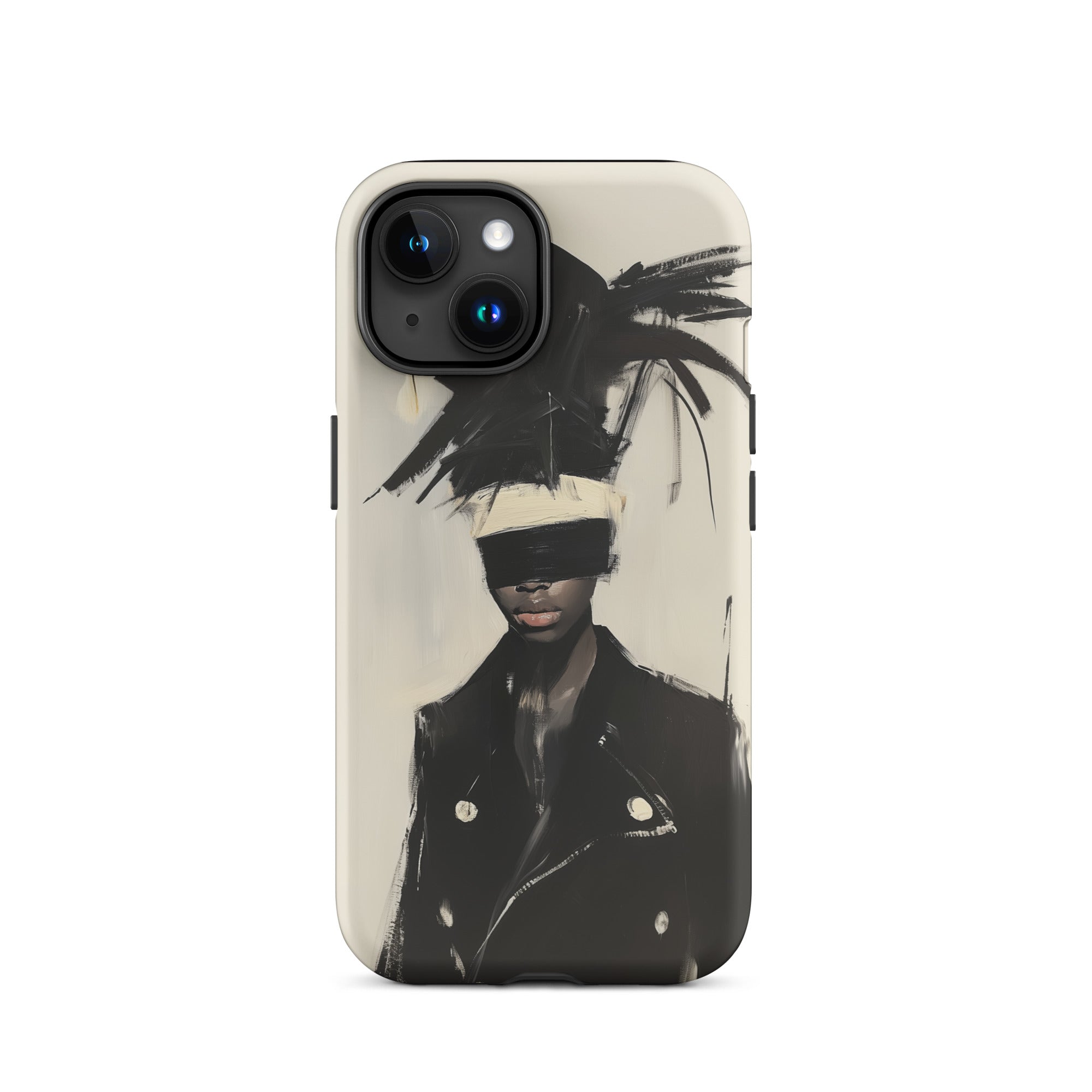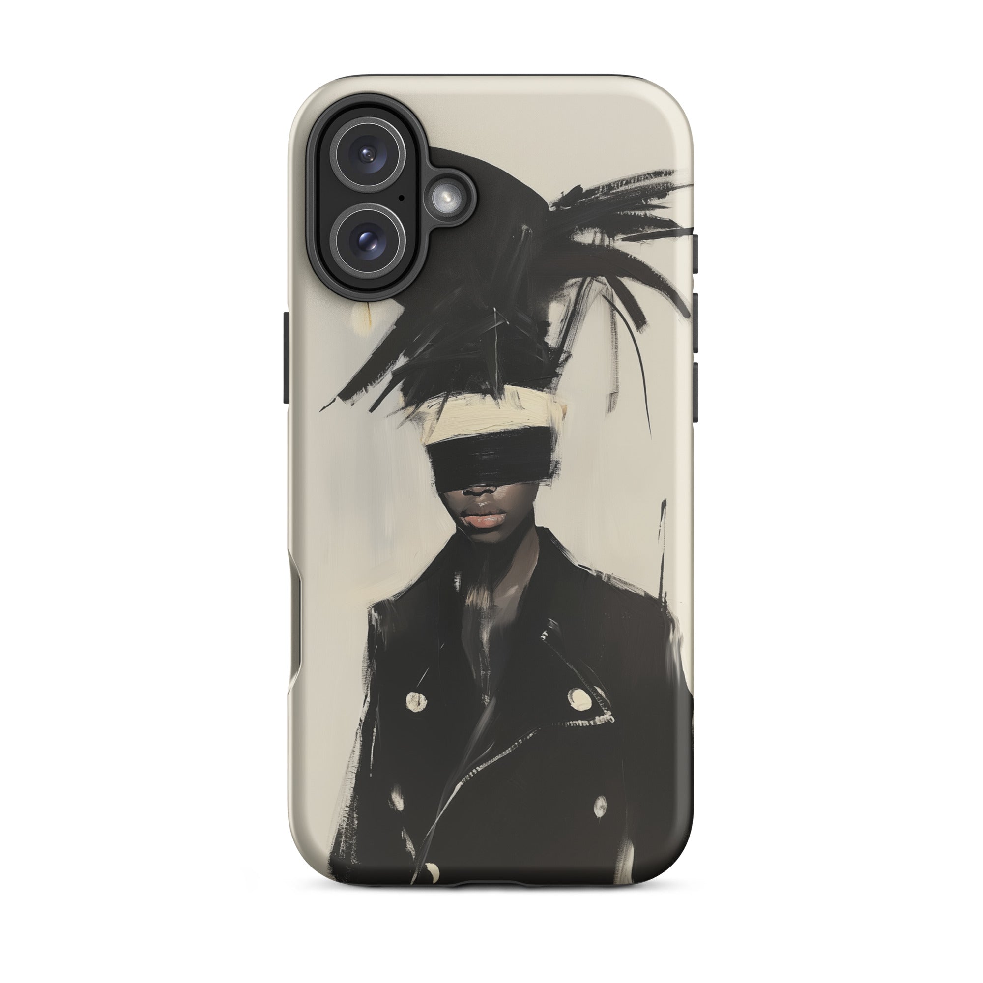 Cosa succede quando il silenzio sfila? Blindside non chiede. Dichiara. Questa custodia per iPhone è una rivolta tascabile di sfida, confezionata come un'arma segreta. Al suo centro: un'icona trans nera avvolta in pelle militante, bendata non per obbedienza ma per comando. Il piumaggio sopra? Meno ornamento, più dichiarazione—un esoscheletro di stile che erompe verso l'alto come una fenice nata dal drag.