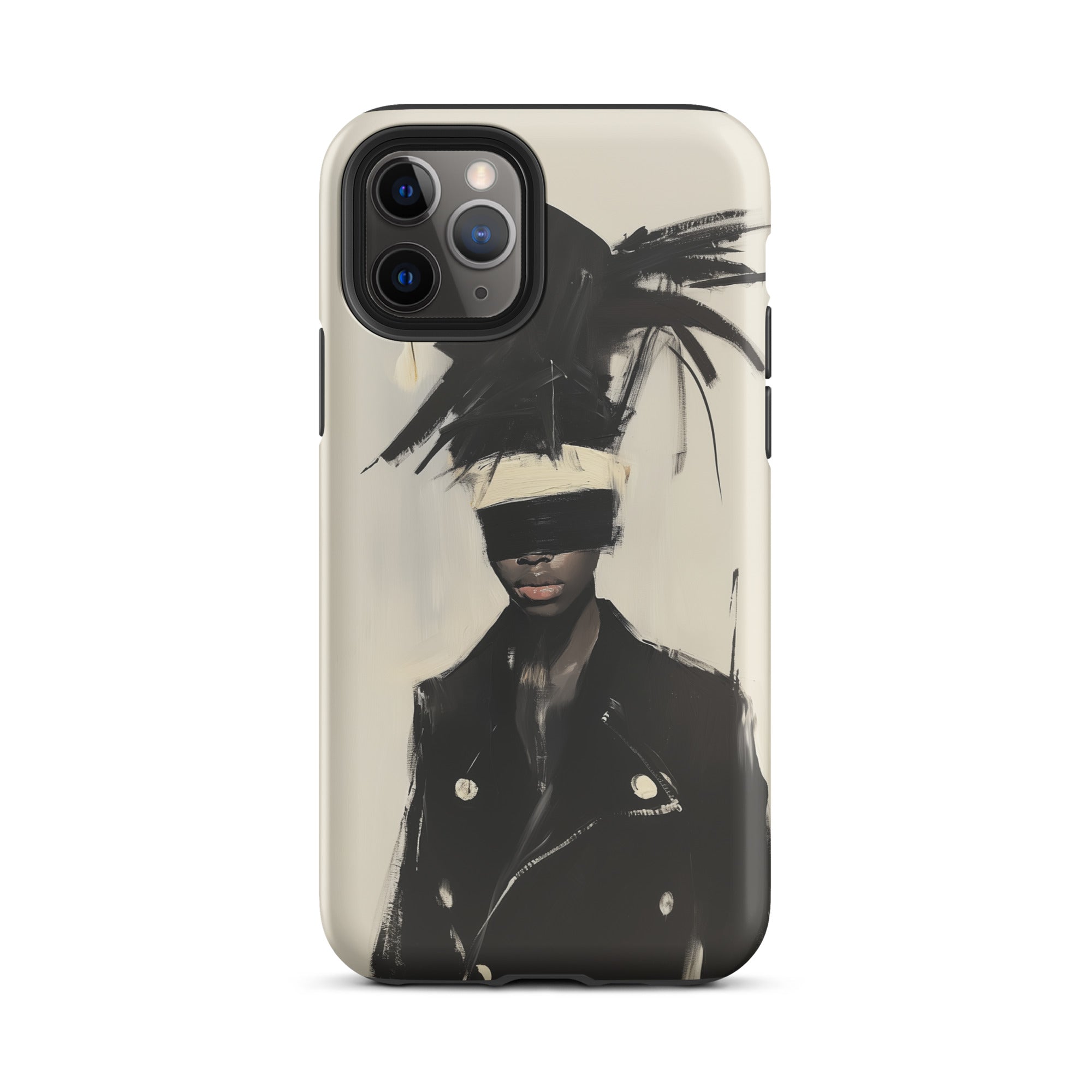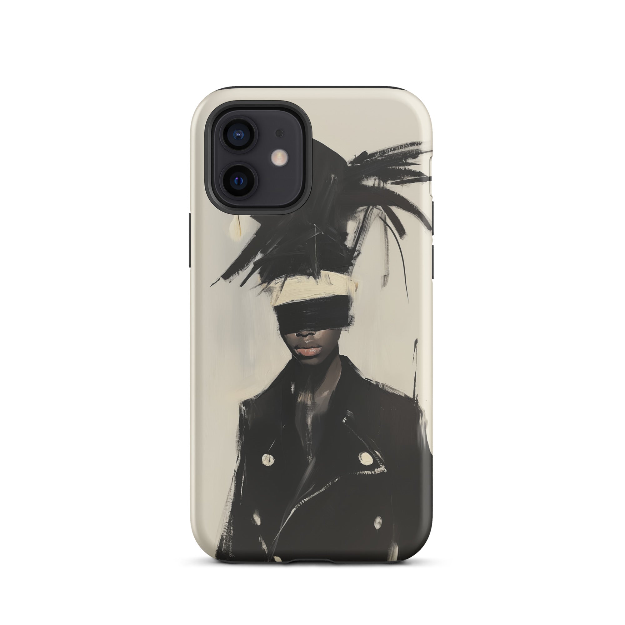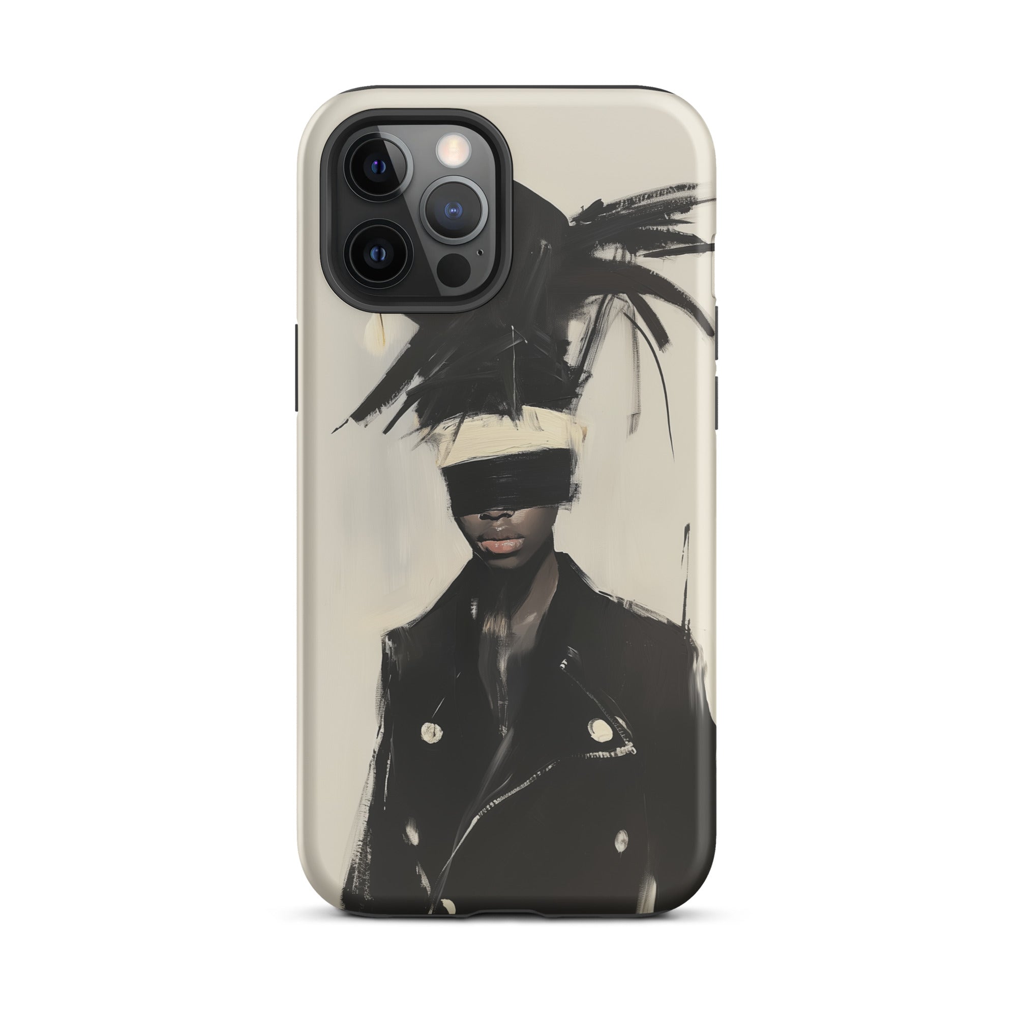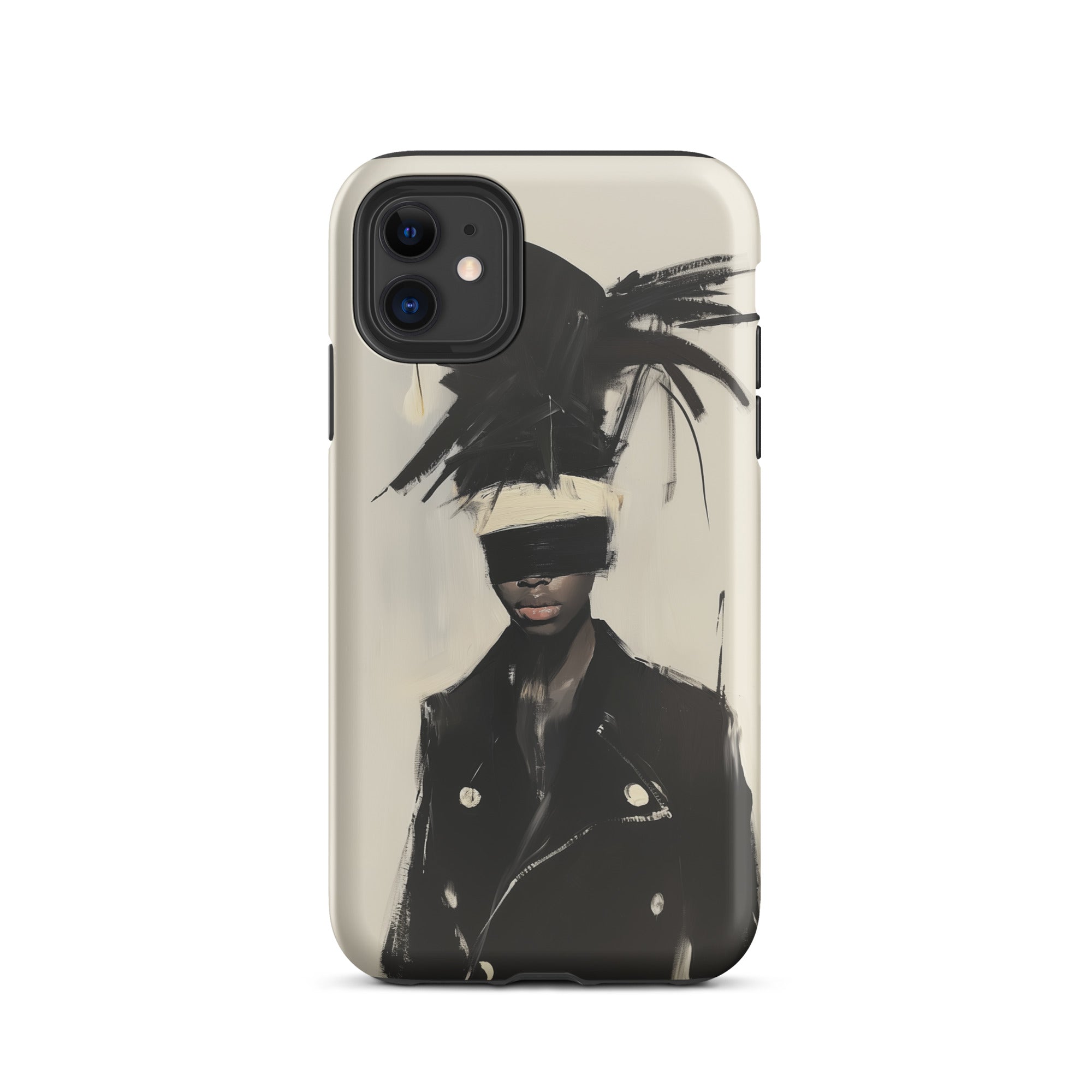 Cosa succede quando il silenzio sfila? Blindside non chiede. Dichiara. Questa custodia per iPhone è una rivolta tascabile di sfida, confezionata come un'arma segreta. Al suo centro: un'icona trans nera avvolta in pelle militante, bendata non per obbedienza ma per comando. Il piumaggio sopra? Meno ornamento, più dichiarazione—un esoscheletro di stile che erompe verso l'alto come una fenice nata dal drag.