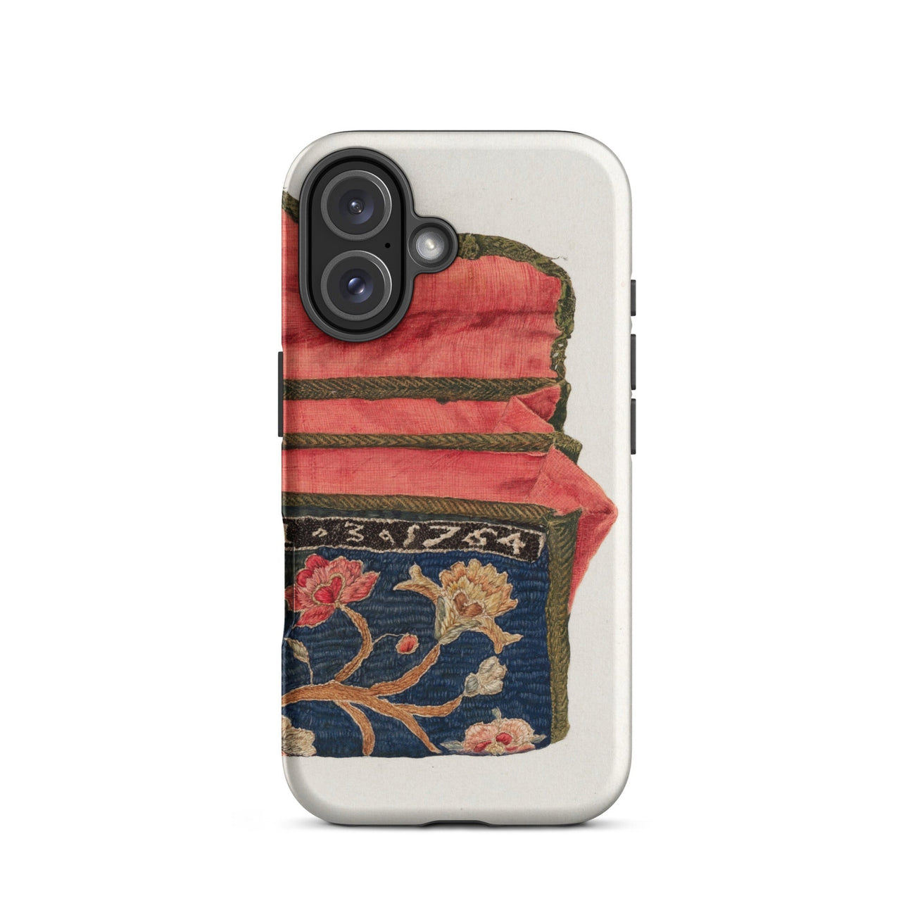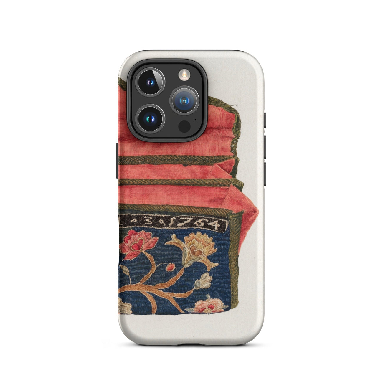Questa custodia per iPhone è un portale—dove l'artigianato vintage incontra la forma contemporanea, dove la storia indugia sotto le tue dita. La borsa ricamata, un'eco dal mondo della moda degli anni '30, si dispiega in strati di seta color corallo e blu navy, il suo ricamo floreale fiorisce attraverso il tempo. Ogni punto è un sussurro, un residuo di tessuti ereditari un tempo amati in un'era di raffinatezza e grazia.