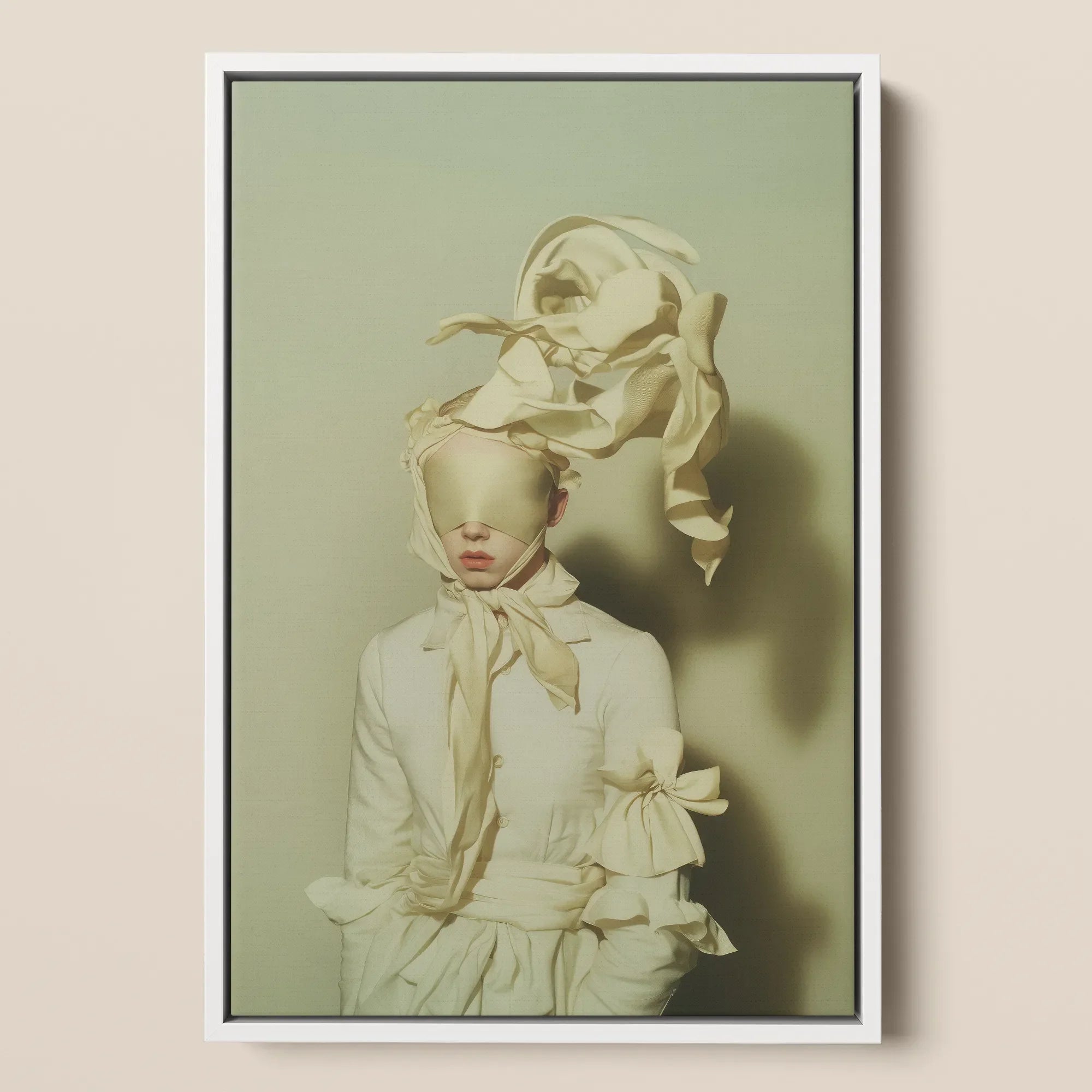 Un ritratto di dissonanza elegante, questa stampa su tela incorniciata di moda cattura la squisita tensione tra restrizione e rilascio. Avvolta in un opulento labirinto di seta avorio, la figura rimane immobile, la loro visione oscurata—eppure il tessuto sopra di loro si contorce in movimento, una fioritura di ribellione che sfida la gravità. Non è un semplice ornamento; è una seconda pelle, che sussurra di identità celata, amplificata, svelata.