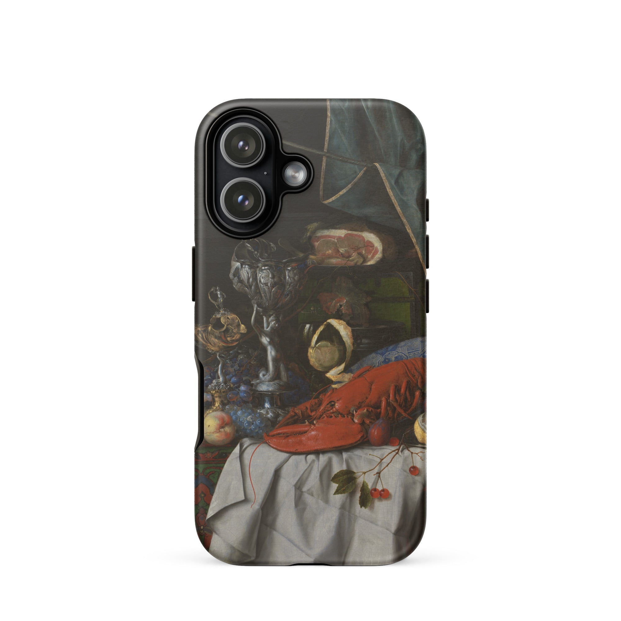 Questa è una custodia per telefono con natura morta barocca che non decora—disorienta. Sotto il drappo di velluto e l'argento stravagante, sotto l'uva che cade e il prosciutto profumato, si trova una silenziosa sfida: bellezza come esca, opulenza come miraggio. Nel mondo di Gijsbrechts, la visione mente e il lusso è solo un'altra mascherata.
