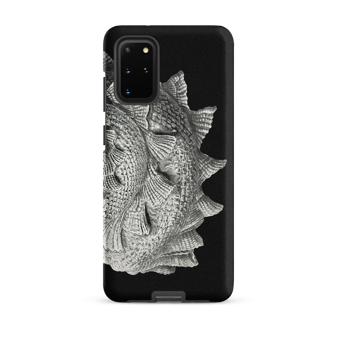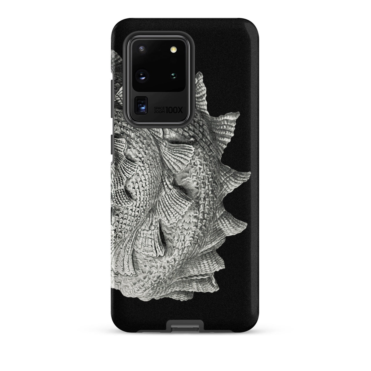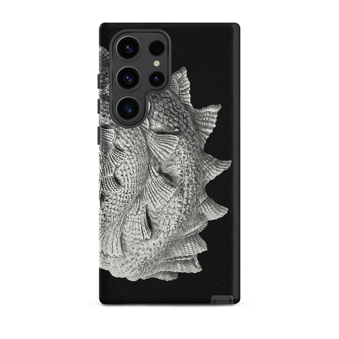 Il capolavoro a spirale di Ernst Haeckel sboccia su questa custodia Samsung come una tempesta fossilizzata, ogni cresta è un'ondata congelata di qualche marea primordiale. I suoi vortici barocchi e le sporgenze pinnate richiamano cittadelle di corallo, volte di ammoniti, l'armatura costolata di antichi cefalopodi.
