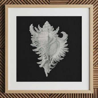 Le intricate creste e striature del guscio emergono in Stark Relief, una testimonianza dell'arte della natura. Osserva come la luce sembra giocare attraverso la sua superficie perlescente, ogni scanalatura e colonna vertebrale incise con precisione scientifica.