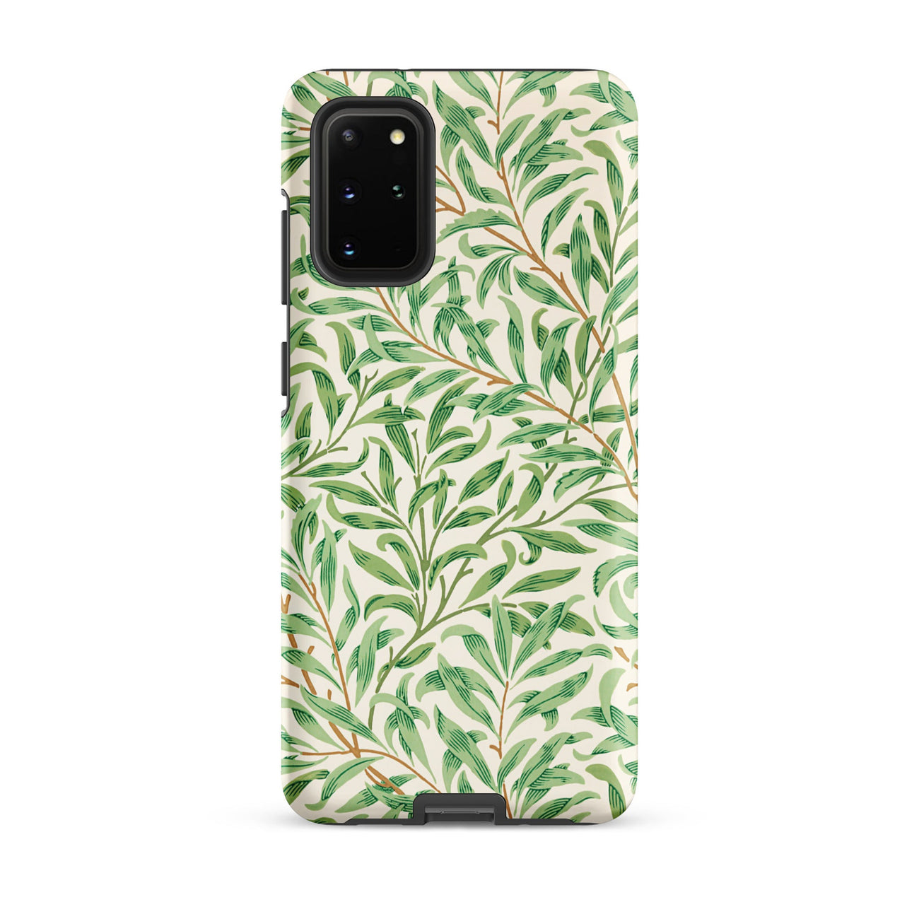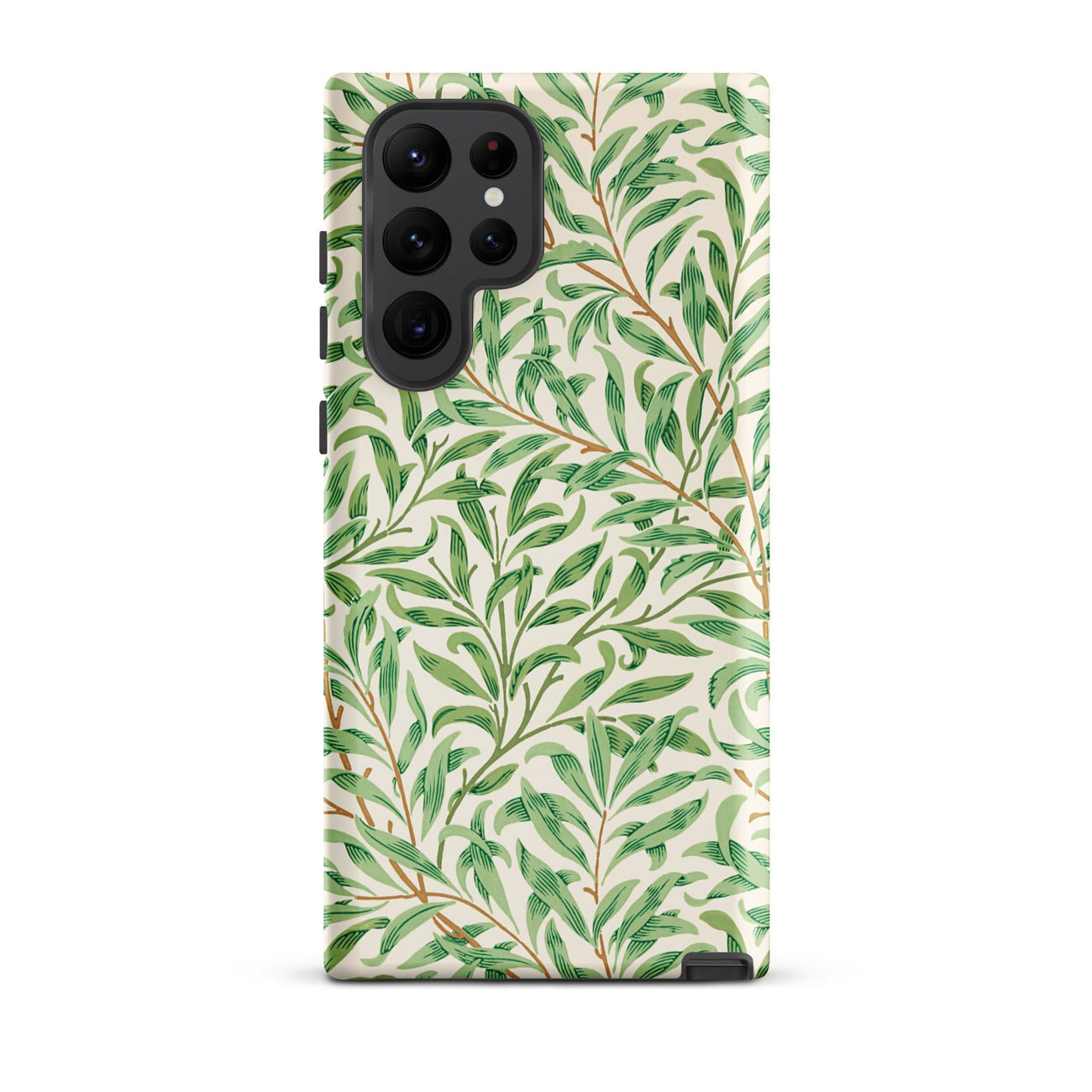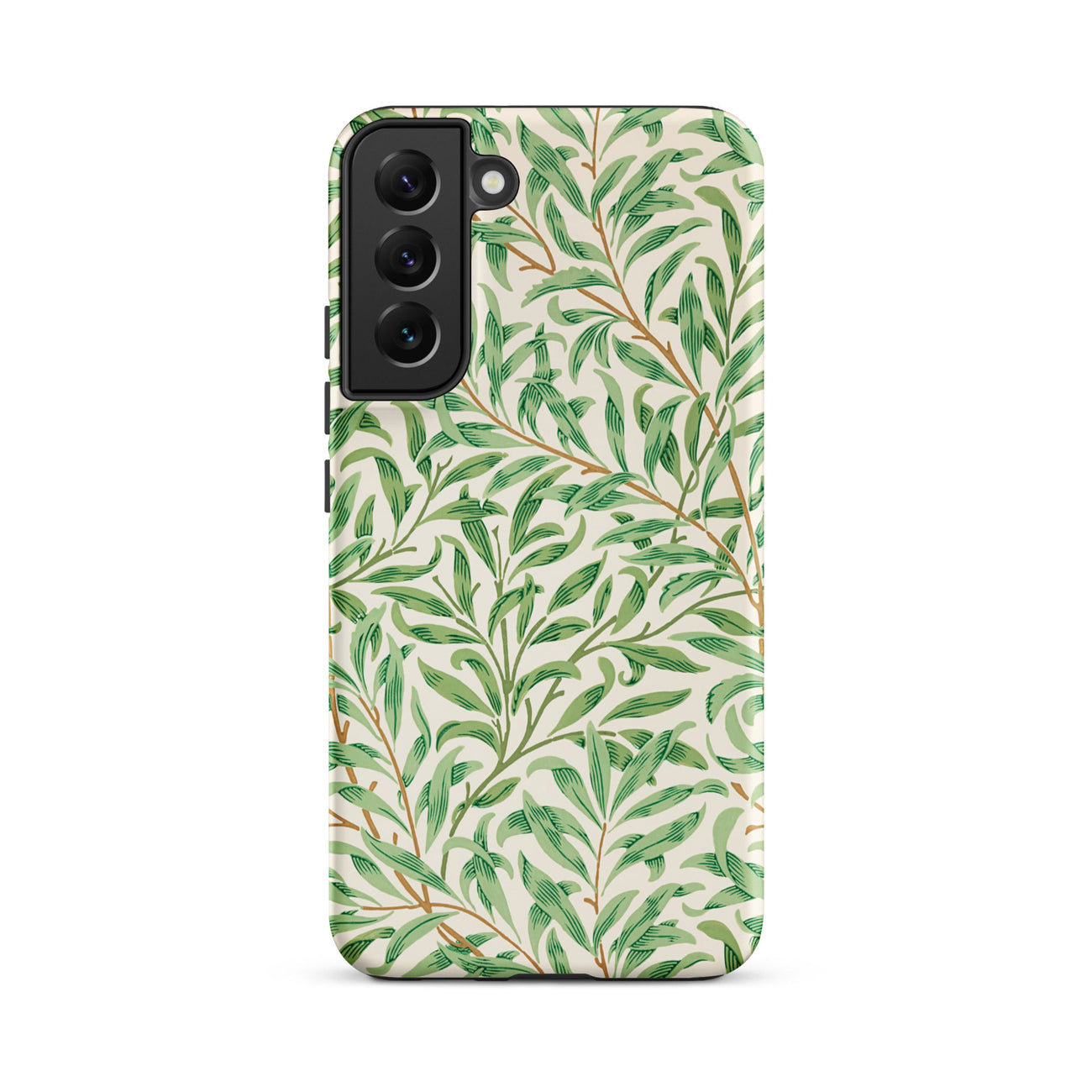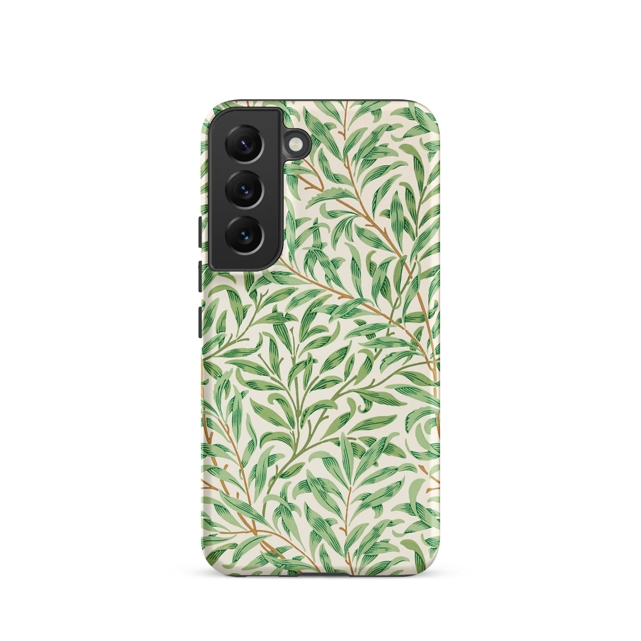Qui, stampato su una custodia Samsung, il motivo diventa architettura portatile: grazia Art Nouveau avvolta attorno al tuo telefono, le sue radici profonde nella riforma del design del XIX secolo. I verdi flessibili passano dal salvia all'ombra, attraversati da sottili steli color terra di Siena.