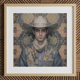 Farzad si trova al crocevia tra Oriente e Occidente, la sua presenza è una audace rivendicazione di identità. Questo cowboy gay arabo cattura un uomo che sfida la convenzione—una rosa del deserto che fiorisce nella vasta frontiera di questa stampa d'arte. Il suo sguardo incrollabile porta il peso di storie non raccontate, sussurrando di poeti beduini queer e mistici sufi, di carovane che tracciavano costellazioni attraverso le sabbie persiane.