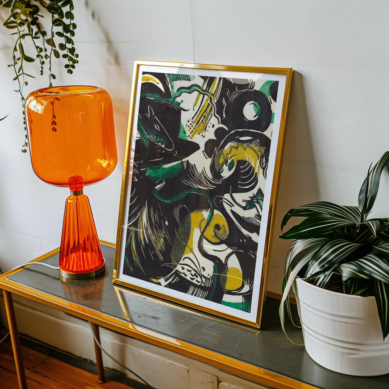 Immergiti nel vorticoso caos di "Genesis II" di Franz Marc, dove l'energia primordiale esplode in una sinfonia di nero, verde e oro. Questa affascinante stampa a legna cattura il potere grezzo della creazione, le sue linee dinamiche e le forme audaci che evocano la tumultuosa nascita di un nuovo mondo.