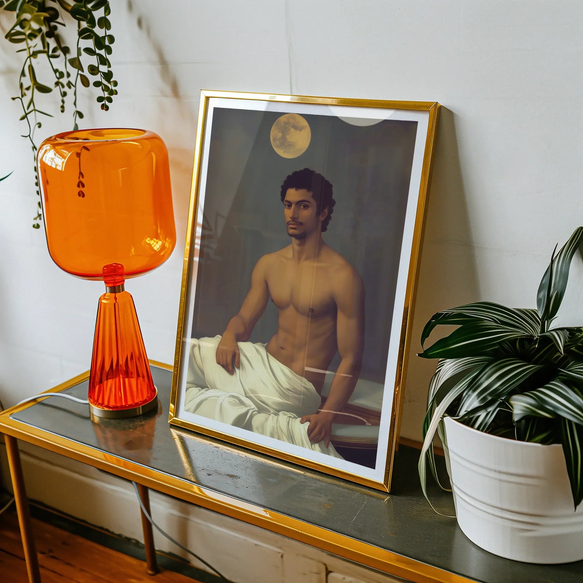 Adorna il tuo spazio con questo nudo sensuale stampa d'arte, una dichiarazione audace di empowerment gay, fascino erotico calma e sensuale. Lascia che questo strano Rajasthan figura accenda le conversazioni sul desiderio, la vulnerabilità e il fascino duraturo della bellezza maschile nella bella arte.