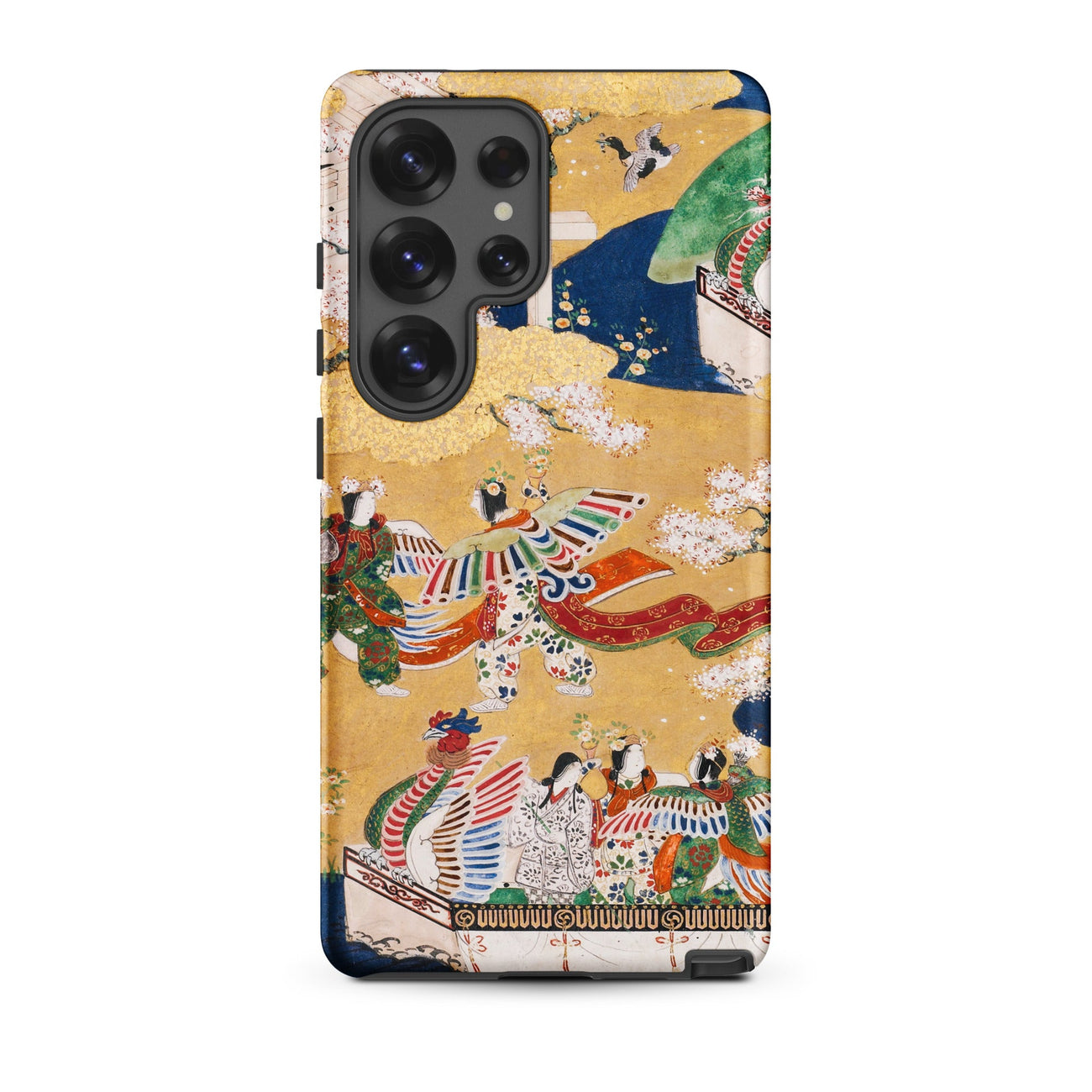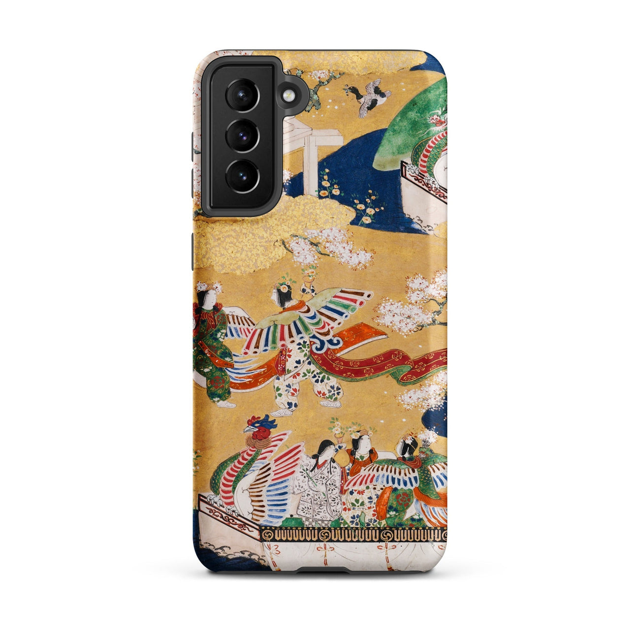 Sul tuo Samsung, la custodia si trasforma in una galleria portatile, portando la poesia visiva dei rotoli emakimono e la narrazione delicata e deliberata della pittura di corte giapponese classica.