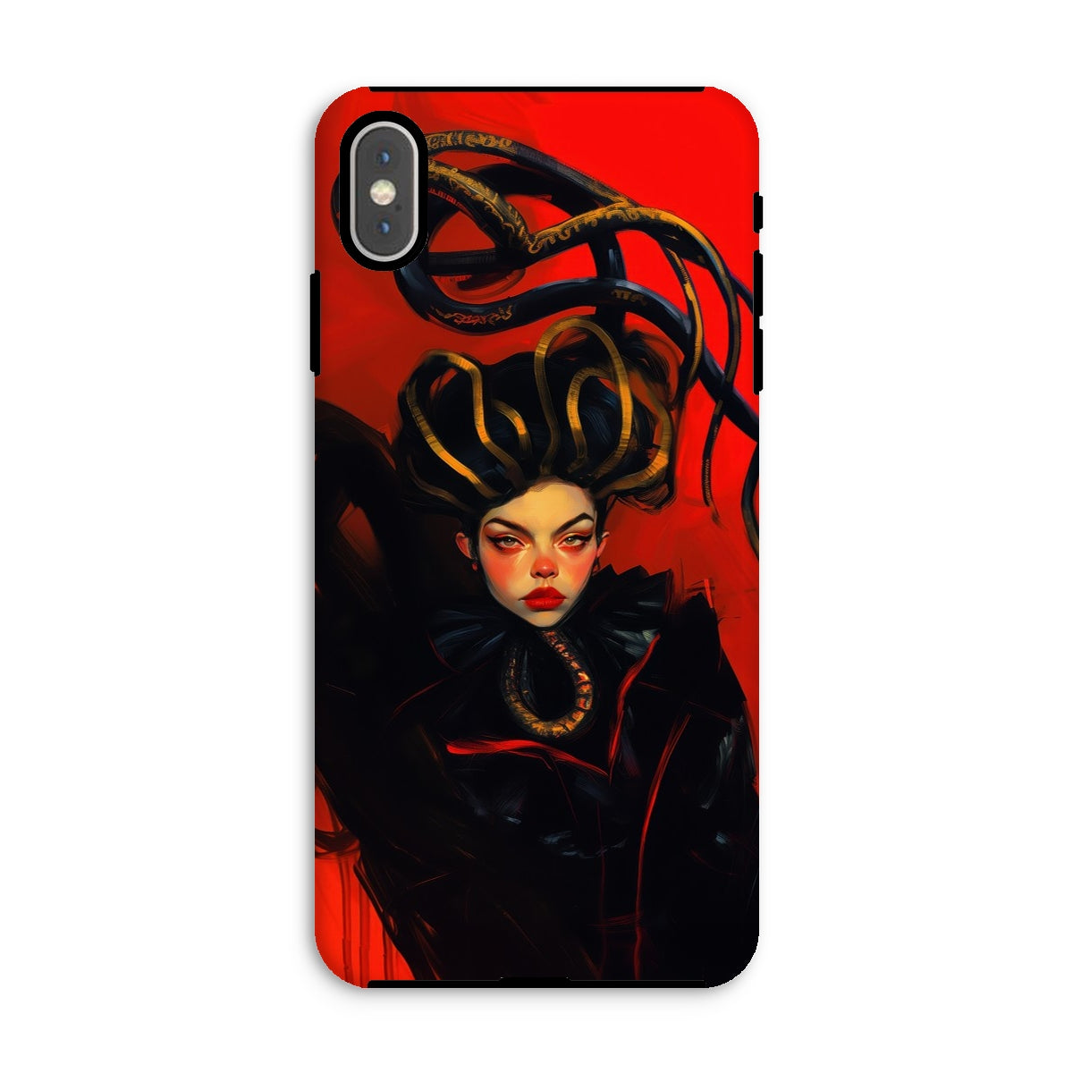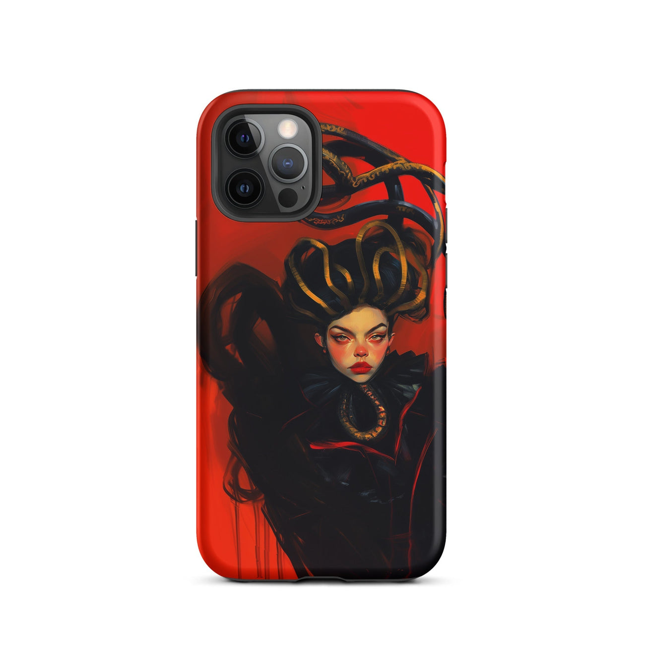 Questa custodia per iPhone trasforma il tuo dispositivo in un potente talismano, avvolto nell'oscura e sontuosa energia di una terrificante strega queer. L'opera d'arte, meticolosamente riprodotta, presenta la figura sorprendente di una strega saffica, le cui trecce si attorcigliano come serpenti, immerse in un oro profondo e un nero ombreggiato. Ogni dettaglio sussurra con un opulento surrealismo, attirandoti nel suo mondo pericoloso.