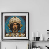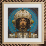 Il vuoto non è vuoto. Vibra con storie ancora non raccontate, con gli echi delle preghiere sussurrate sotto i minareti e le risate degli amanti intrecciati sotto lune arabe. Mehdi—ornato di regalia celestiale—fluttua non come un esiliato ma come un emissario di un futuro arabo e queer. Il suo casco da astronauta dorato è una reliquia di dinastie dimenticate e una profezia di domani. I suoi arabeschi riflettono i muqarnas delle antiche moschee. Ogni filigrana è una testimonianza di una civiltà che ha mappato le stelle molto prima che l'Occidente osasse sognare.