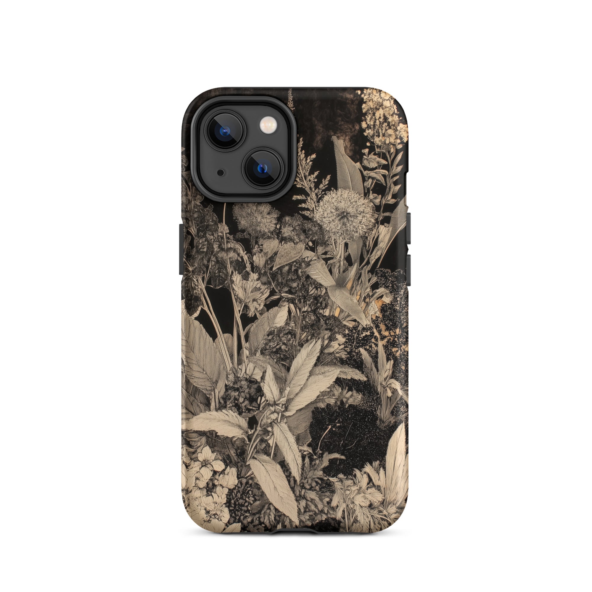 Midnight Garden - Custodia iPhone con arte floreale in bianco e nero