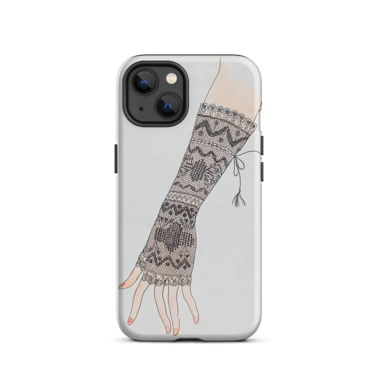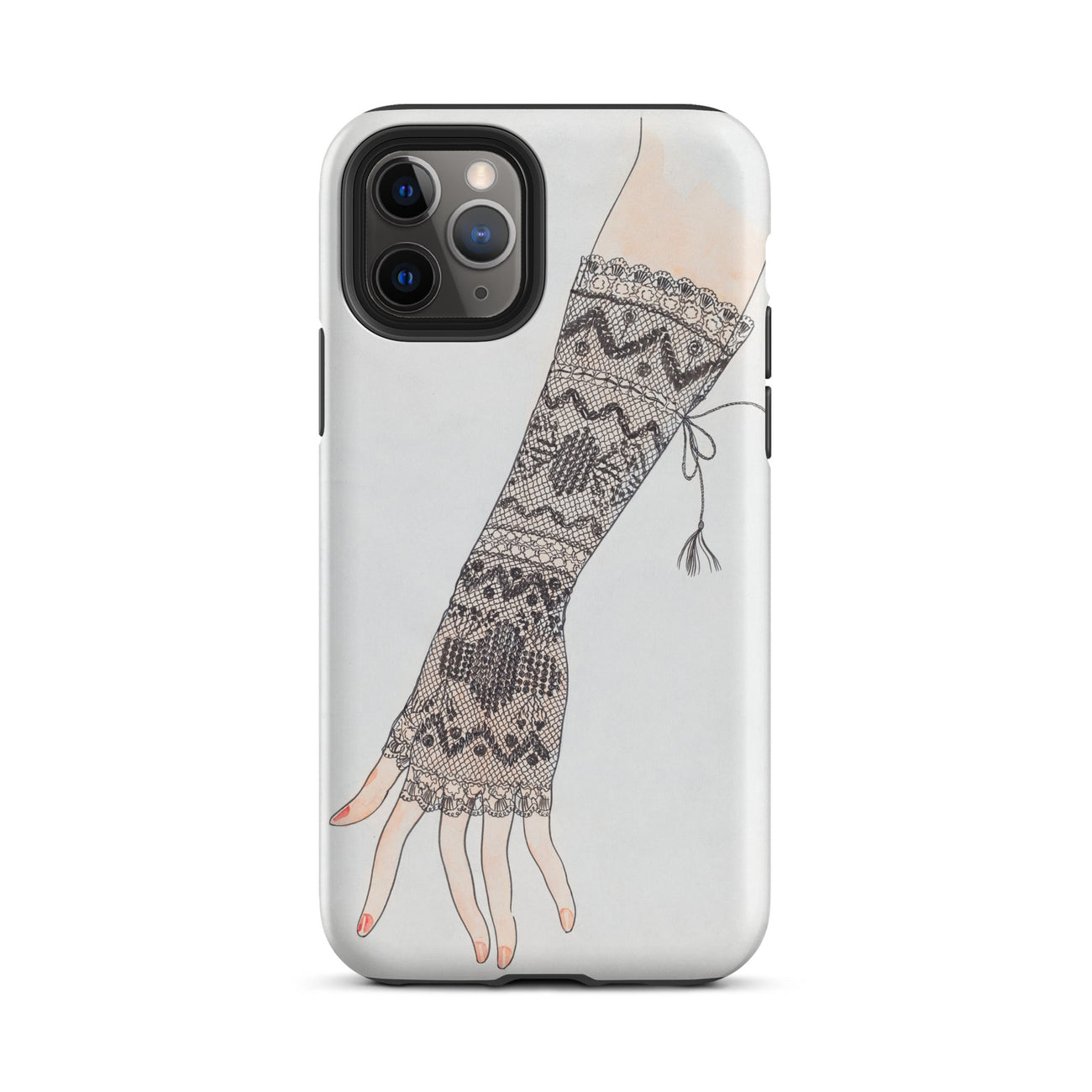 Un sussurro di pizzo, una traccia di tempo—avvolto attorno al tuo iPhone come una reliquia di eleganza dimenticata. Un velo tra passato e presente, dove l'arte della moda degli anni '30 incontra la funzione moderna. La meticolosa rappresentazione di Lillian Causey di un guanto di pizzo, originariamente un acquerello per l'Index of American Design, trasforma la tua custodia per iPhone in un portale di raffinatezza vintage.