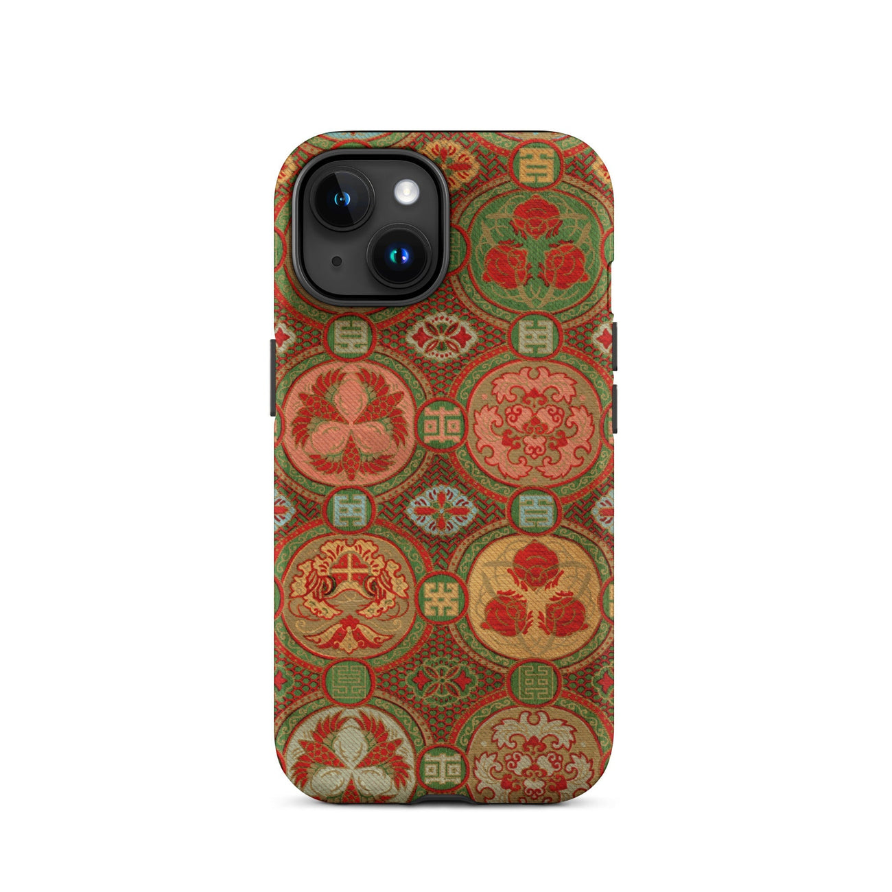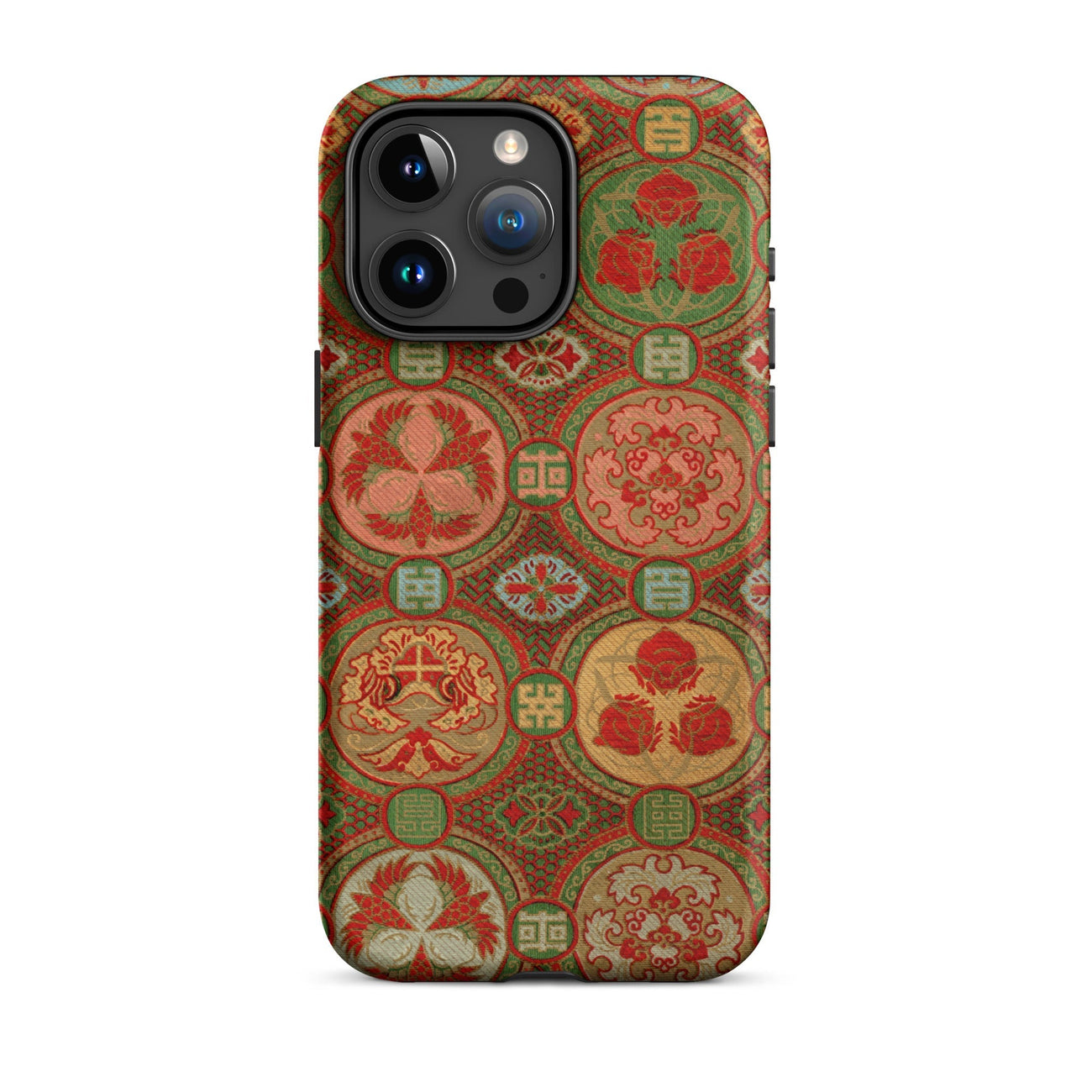 Il design ornamentale di George Ashdown Audsley collega le tradizioni decorative storiche con l'utilità moderna, infondendo l'influenza del Japonisme del XIX secolo in ogni dettaglio. Scarlatto e oro brillano con intensità vibrante, riecheggiando la geometria cosmica nell'arte—una mappa di cicli infiniti, dove bellezza e significato convergono. Questa vivace custodia ornamentale per iPhone è più di una protezione; è una dichiarazione di artigianato duraturo, che unisce il simbolismo spirituale dell'Oriente con la precisione e l'opulenza del design vittoriano.