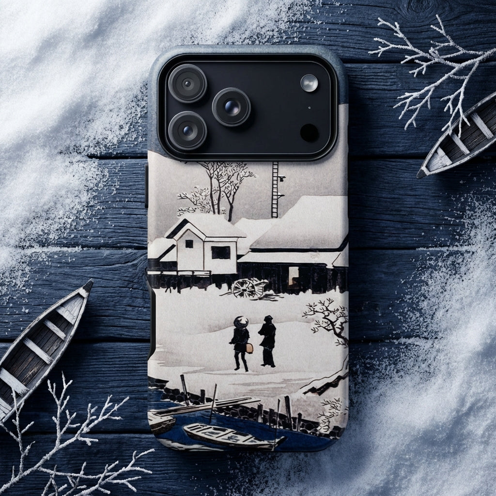Questa custodia per iPhone in ukiyo-e giapponese cattura l'anima dell'arte shin-hanga, dove ogni tratto bilancia luce e ombra, silenzio e movimento. Un omaggio senza tempo ai paesaggi invernali del Giappone, fonde raffinatezza estetica con funzionalità moderna. Sottile ma resistente, tattile ma elegante, questa custodia protegge il tuo dispositivo trasformandolo in un capolavoro portatile di stampa su legno. Che tu cerchi un tocco di minimalismo wabi-sabi o il fascino poetico del Giappone antico, questa custodia porta la bellezza silenziosa dell'inverno di Hiroaki Takahashi a portata di mano.