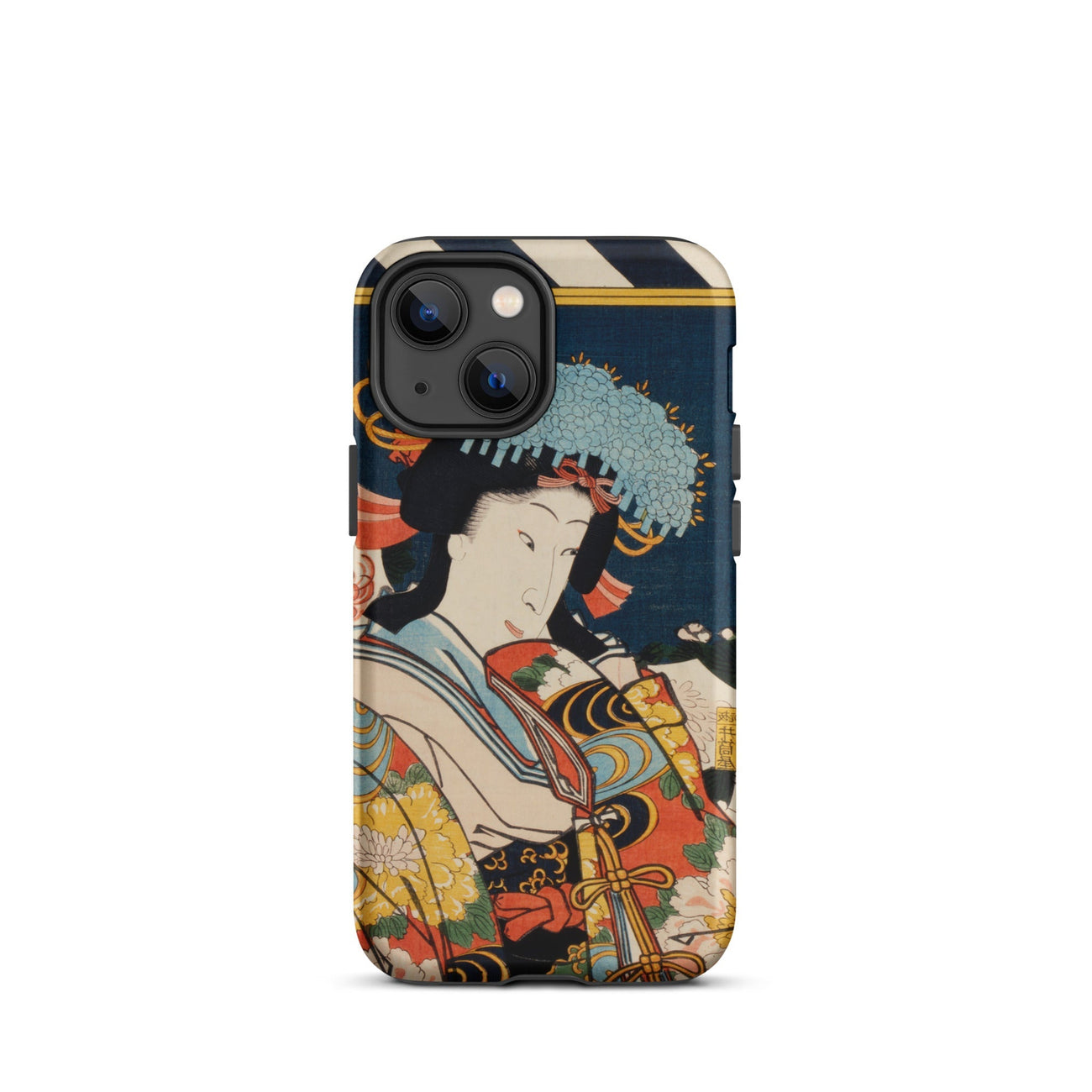Trasformerai il tuo iPhone in un portale affascinante per il Giappone Edod con questo splendido caso Ukiyo-e. La squisita stampa in legno di Toyohara Kunichika mette in mostra una cortigiana accattivante, la sua pelle alabastro contrasta vividamente contro un Marina sfondo. La sua elaborata pettinatura, adornata con crisantemi azzurri e forcine dorate di Kanzashi, attirerà sguardi ammirati. Avvolto in una sontuosa Kimono in fiamme con peonie cremisi e onde ceruleane, incarna l'altezza dell'eleganza di Yoshiwara.