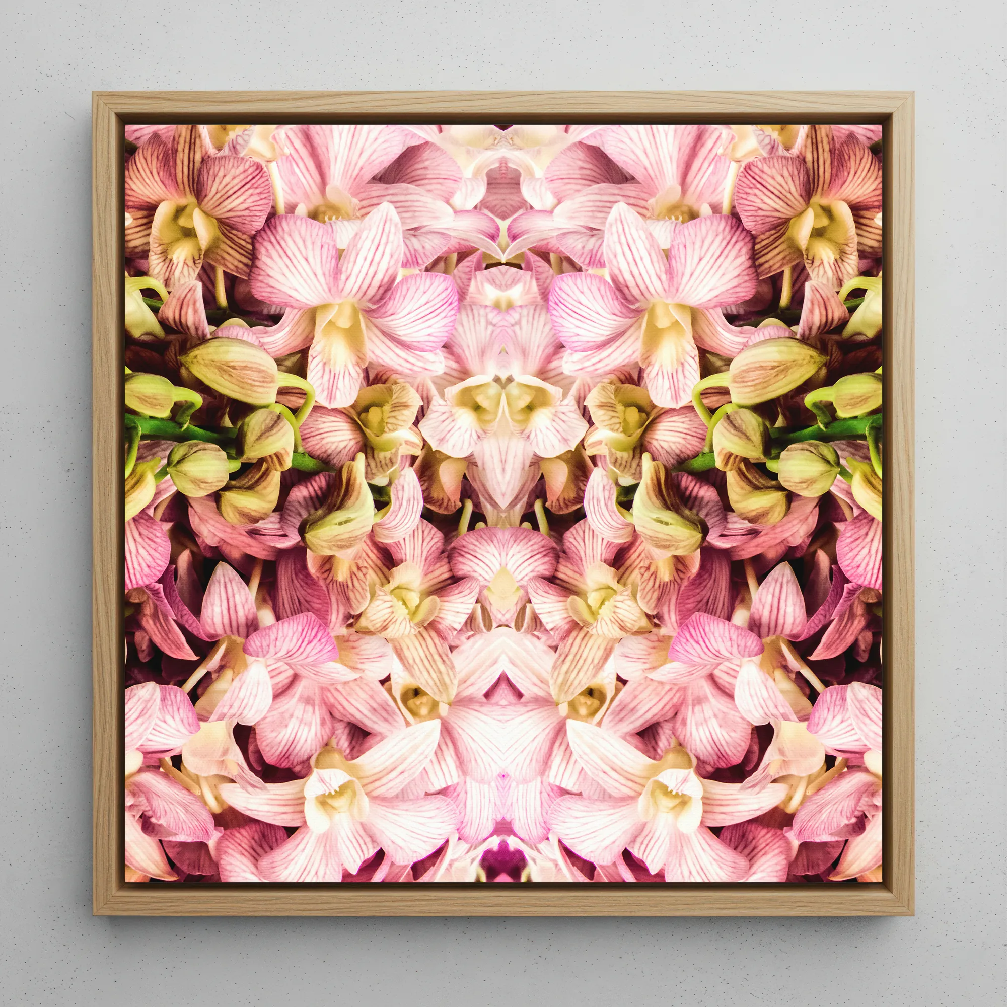 Immergiti in un paese delle meraviglie caleidoscopico di Orchid Opulence rosa con questo tela incorniciata. I delicati petali rosa si sono manifestati nello splendore simmetrico, creando un mandala floreale ipnotico che affascina l'occhio e agita l'anima. L'eleganza della natura incontra l'arte digitale mentre i segmenti specchi trasformano ogni fioritura in un intricato arazzo di felicità botanica.