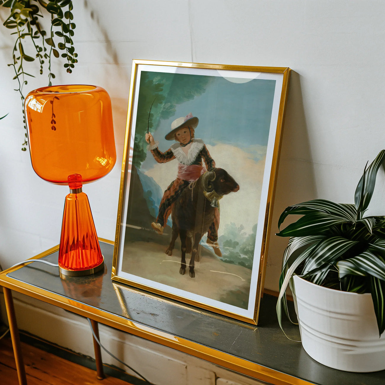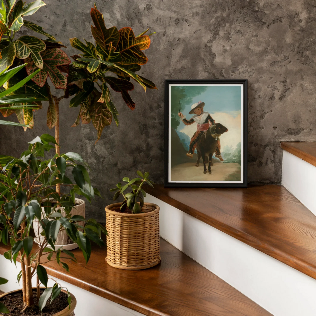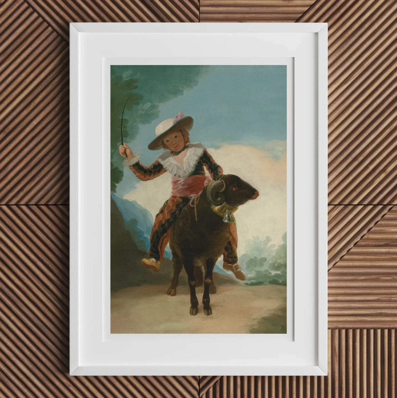 In questo accattivante pezzo di romanticismo, la multa "Boy on A Ram" di Goya stampa d'arte (1786-87) balla sulla cuspide di Whimsy e Gravitas. Il bambino di Harlequinesque, a cavalcioni di un formidabile ariete, incarna la propensione dell'artista a fondere la fantasia con il realismo.