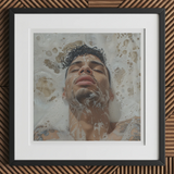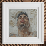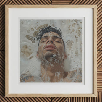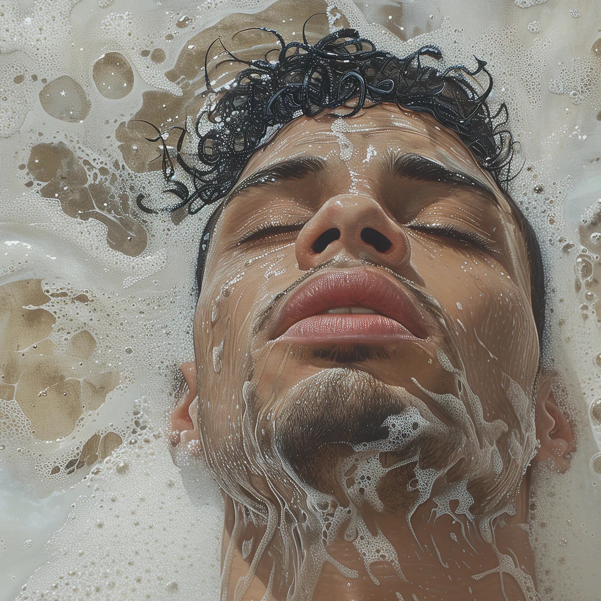 La luce del sole, filtrando attraverso l'acqua, balla attraverso i suoi occhi chiusi, bagnandolo con calore, come se il tempo stesso fosse rallentato in una pausa languida e lussuosa. Le sue labbra, leggermente separate, tengono il respiro dei sogni, catturati tra la realtà e l'inconscio mormorio del piacere.