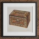 Delizia i tuoi occhi con questo squisito capolavoro di Francis Law Durand – una scatola da cucito intarsiata che trascende la mera utilità. Sarai ipnotizzato dai motivi labirintici che adornano la sua superficie, una sinfonia di precisione geometrica in caldi toni terrosi.