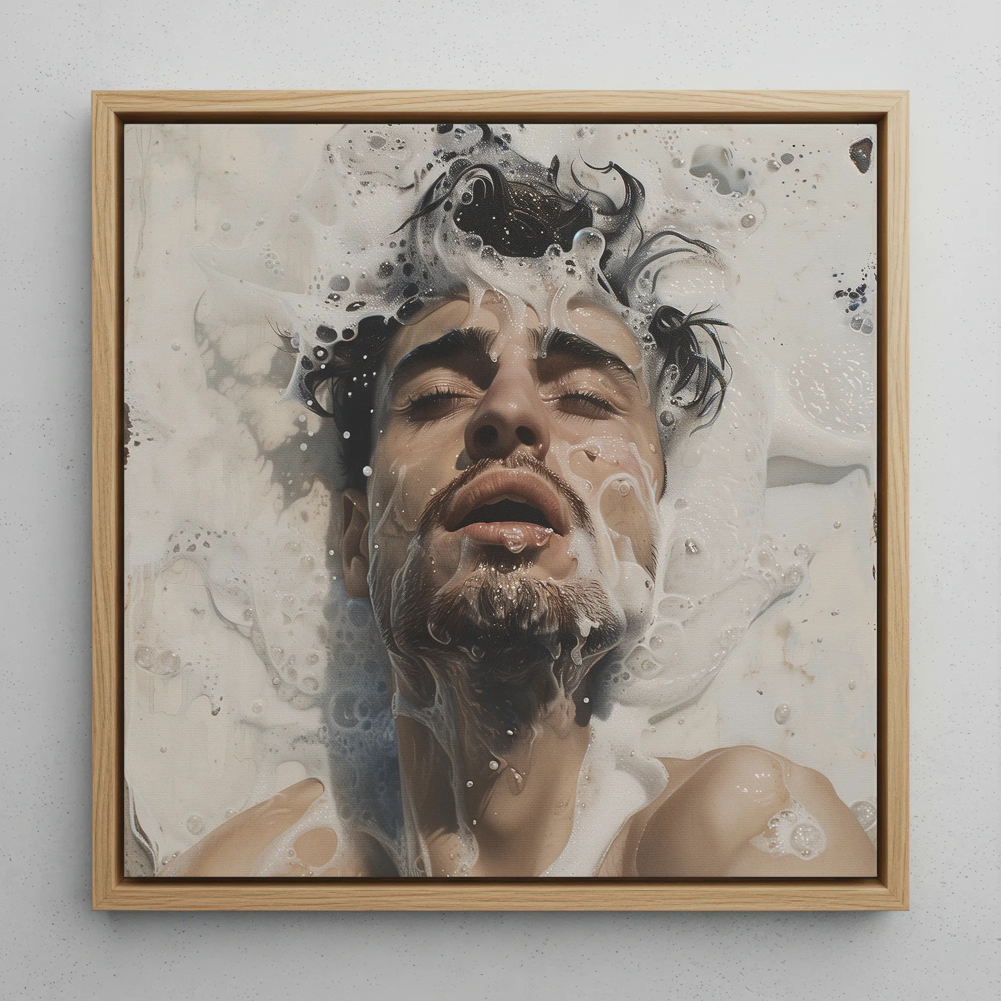 È perso in un etereo mare di acque latte. Correndo sulla sua pelle come la seta più bella. Il viso incorniciato da viticci scuri di capelli martellati dalle onde mentre la luce del sole filtra attraverso. Benedire i suoi lineamenti con un calore palpitante che parla di giornate estive nella sensuale contentezza. Una fetta di beatitudine in cui l'aria stessa sembra satura dei suoi morbidi echi di gioia.