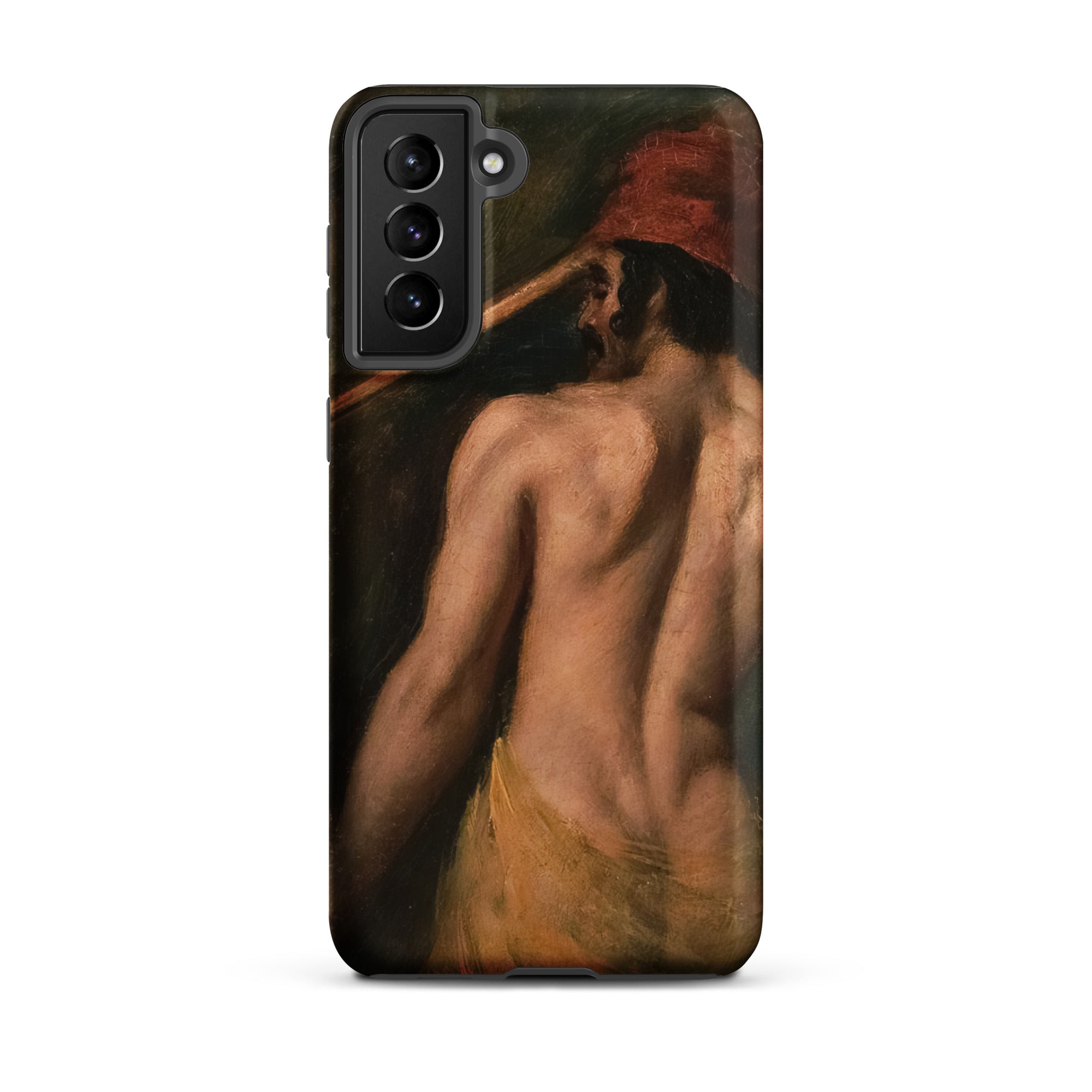 La tensione si avvolge nella curva della spina dorsale, il braccio in posa ma trattenuto, le catene della storia invisibili ma implicite. Questa custodia Samsung lega l'arte britannica del diciannovesimo secolo, studi accademici del nudo, esotismo orientalista ed echi dell'audacia cromatica di Delacroix.