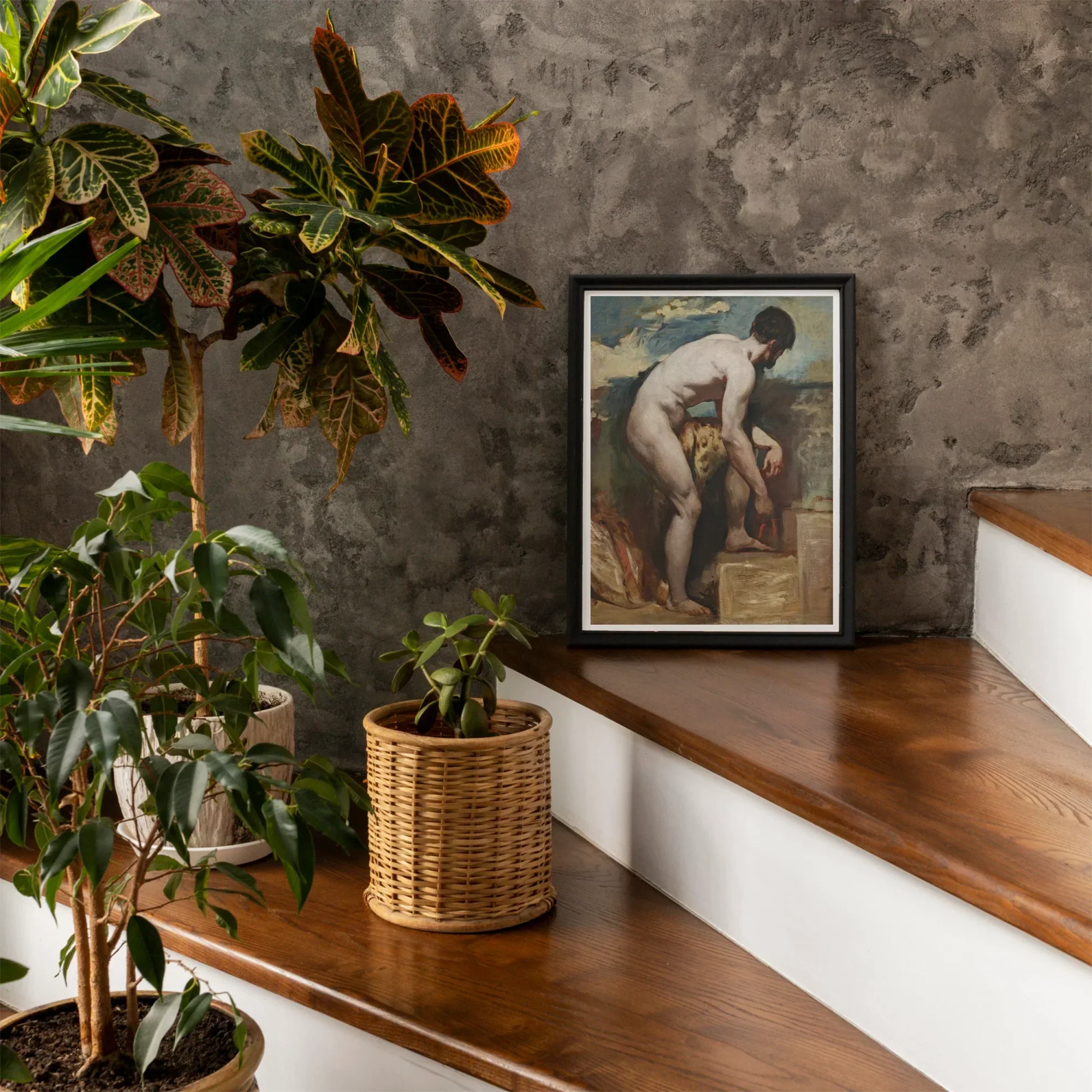 Questo non è solo un dipinto; È una macchina del tempo che ci lancia in uno studio artistico di Londra chiuso, dove l'approccio audace di Etty alla forma maschile stava sollevando le sopracciglia e lasciando cadere Monocle. È un'opera che si trova a cavallo, un piede saldamente piantato nella tradizione accademica mentre l'altro calcia la porta del modernismo. Dimentica le definizioni del romanticismo dei tuoi libri di testo: questo è ciò che accade quando l'addestramento classico incontra talento grezzo e un pizzico di spirito rivoluzionario.