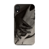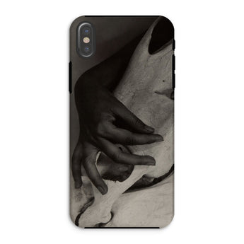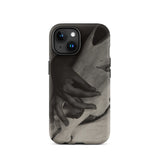Deze fijne kunst iPhone hoes is meer dan bescherming; het is een artefact van contrast, een canvas voor degenen die zich aangetrokken voelen tot modernistische fotografie en de spookachtige elegantie van surrealistische kunst. Het scherpe samenspel van organische textuur en skeletvorm roept thema's op van de vergankelijkheid van het leven, waardoor het een suggestieve keuze is voor bewonderaars van vintage monochrome esthetiek.