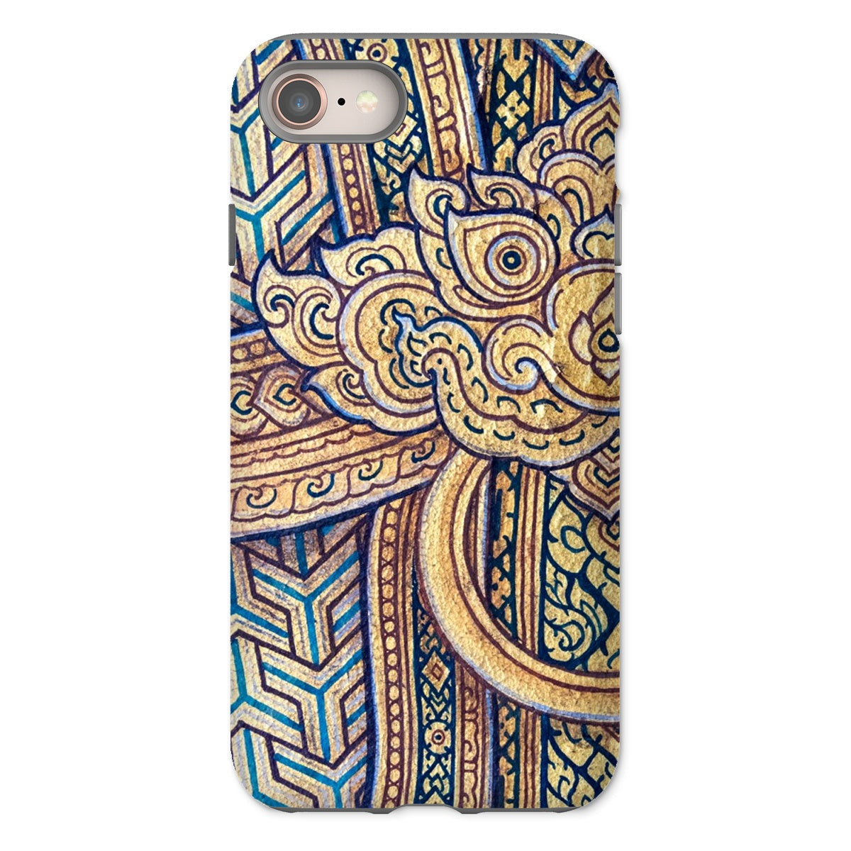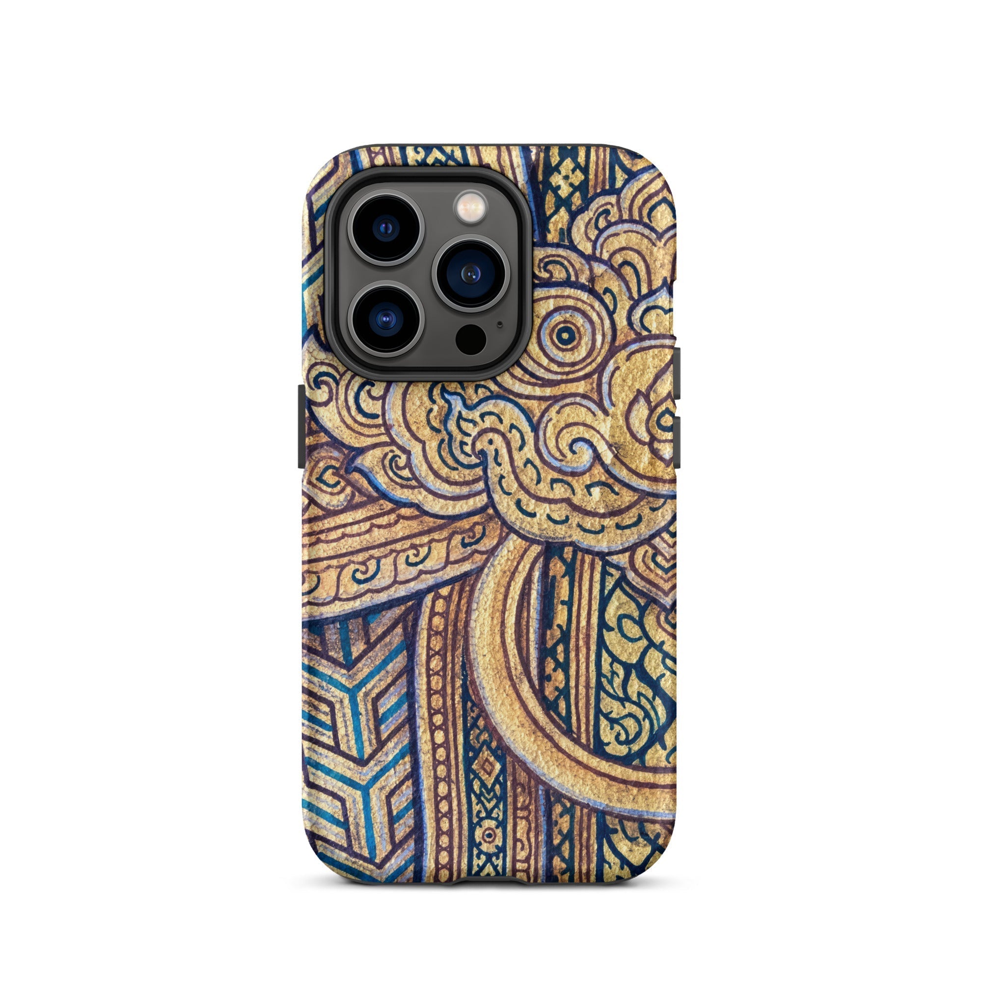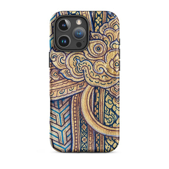 Wikkel je iPhone in de mystiek van Siam met deze door Thailand geïnspireerde hoes. Gouden ranken van lai Thaise patronen omarmen je apparaat en fluisteren verhalen van oude koninkrijken. De waakzame ogen van de Singha gluren uit rijkelijk versierde rolwerken, klaar om digitale demonen af te weren.