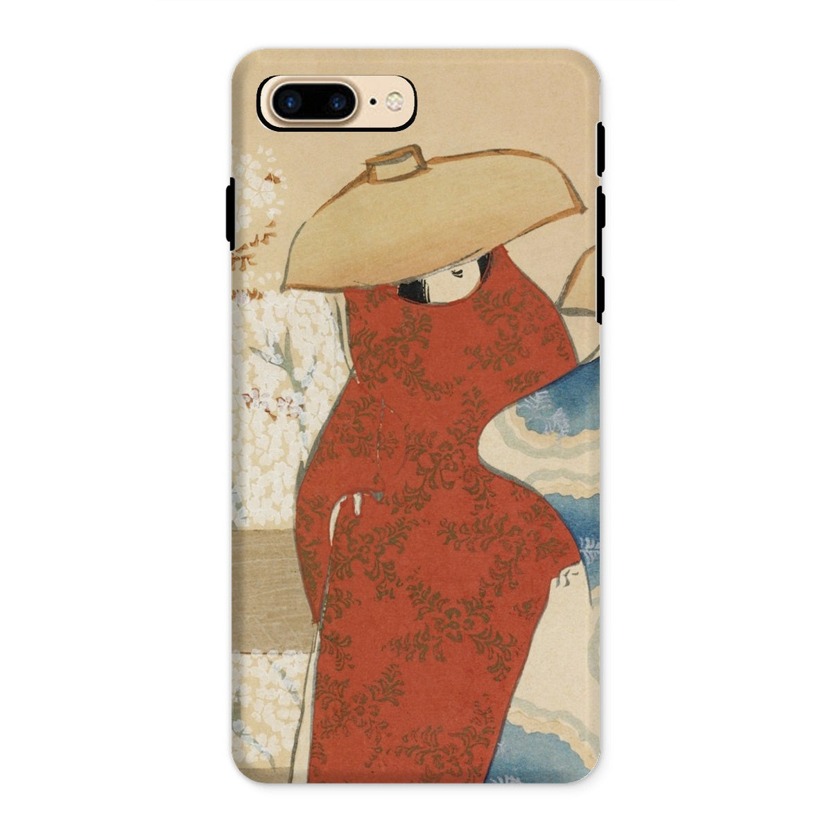 Omhult je iPhone in de etherische pracht van Kamisaka Sekka's Hanami Season Artwork, een top van Meiji Era Rinpa Revival. Deze zaak toont twee Geiko, hun Vermilion en Azure Kimonos in vuur en vlam tegen een rustige beige achtergrond, terwijl ze een droomlandschap van efemere Sakura doorkruisen.