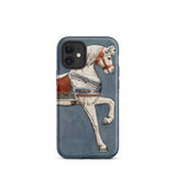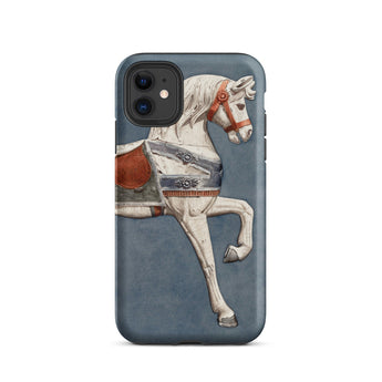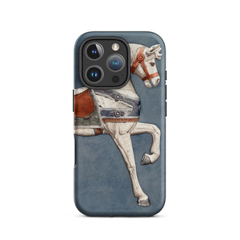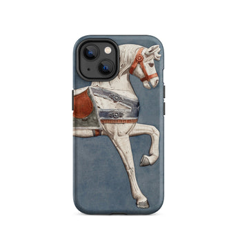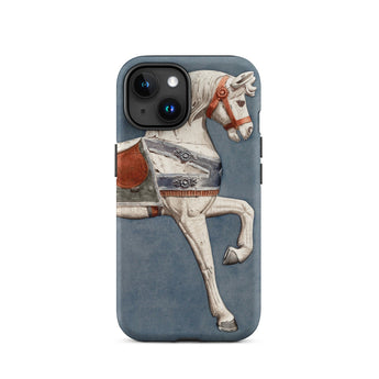 Deze iPhone hoesje transformeert Henry Murphy's Carousel Horse in een meesterwerk op zakformaat - een vluchtige, aquarelachtige droom van oude kermisterreinen die bewaard zijn gebleven. Het steigerende paard, versierd met sierlijke versieringen, lijkt uit de gedempte blauwe achtergrond te springen, zijn elegante vorm vastgelegd in aquarel, grafiet en inkt.