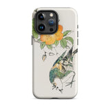Levendige tinten barsten uit, een bloemen-vogel Symfonie op de rug van je iPhone. Kashu's grijze sterrenstanden, tarten de aantrekkingskracht van Gravity, vleugels in een dans met gouden bloemblaadjes. U beschermt niet alleen uw apparaat; Je wiegt een stukje van een plakje Meiji-era Mastery.