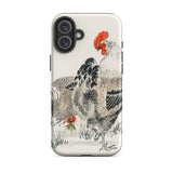 Stap de digitale boerderij binnen, jullie iPhone-dragende kunstliefhebbers. Numata Kashu's hanen paraderen over je scherm, een Meiji-era meesterwerk herboren als mobiele bescherming. Dit hoesje is niet alleen bescherming—het is een tijdmachine, die je meeneemt naar 1885 Japan waar houtsneden regeerden en hanen kraaiden met inktzwarte precisie.