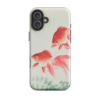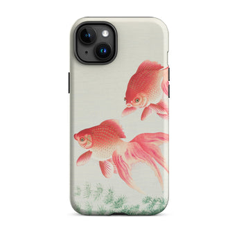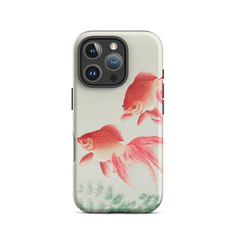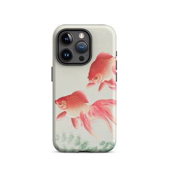 Dompel jezelf in Ohara Koson's fascinerende Kachō-e visie, waar levendige goudvissen glinsteren met het leven op je iPhone geval.