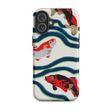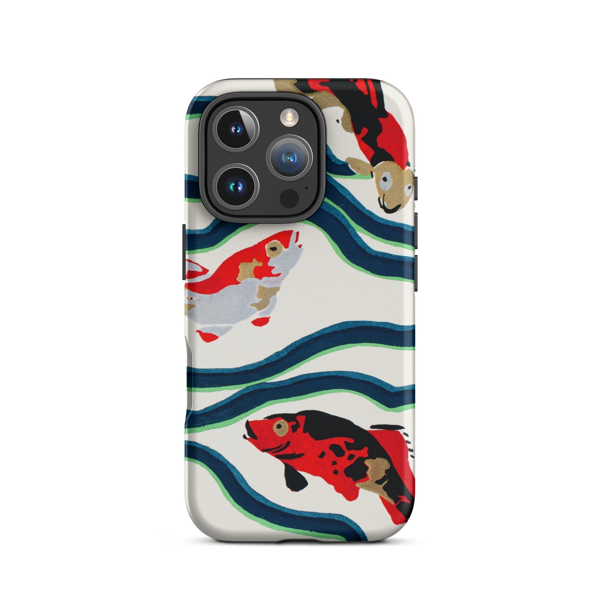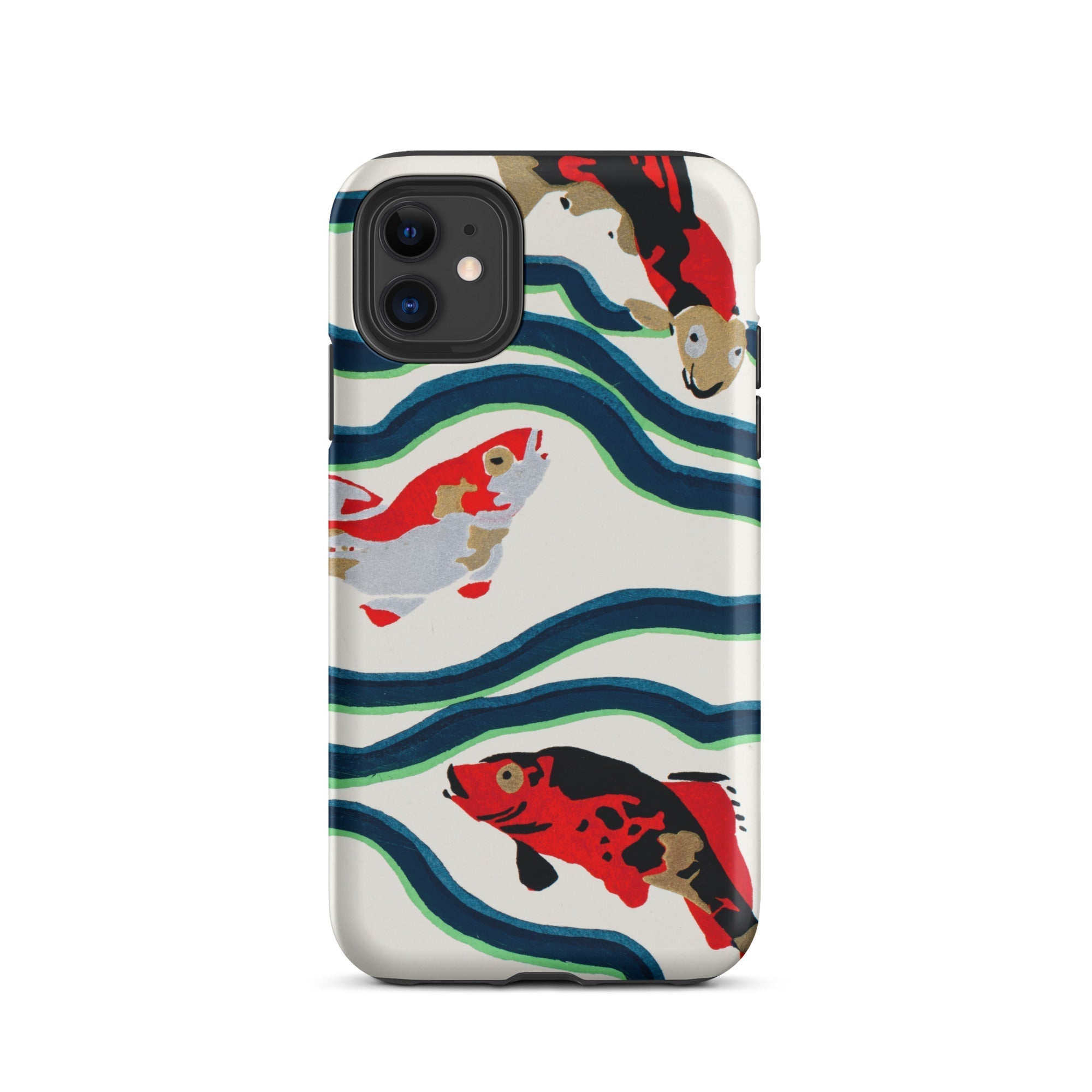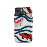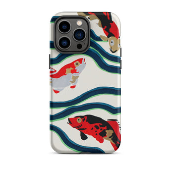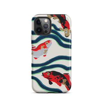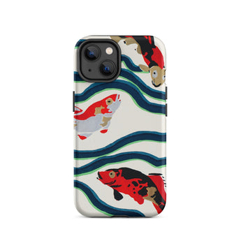 Een rivier van tijd stroomt over je handen. Deze koi vis iPhone hoesje is een delicate symfonie van beweging en traditie, waar E.A. Séguy’s meesterlijke pochoir druktechniek de elegantie van de meest vereerde zwemmer van de natuur doet herleven. Deze Japanse koi vissen, geschilderd in opvallend karmozijn, obsidiaan en ivoor, glijden door kronkelige stromen van diepblauw en jadegroen, echoënd de ritmische puls van oude vijvers. Hun schubben, gekust door de kunstzinnigheid van Art Deco design, glinsteren met de stille veerkracht van eeuwenoude symbolen—welvaart, volharding, transformatie.