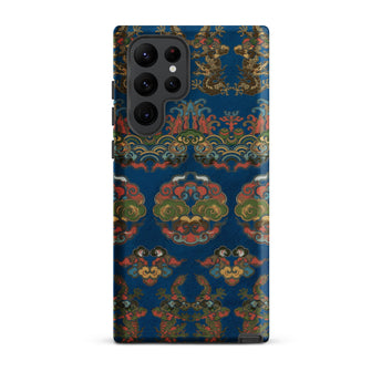 Op je Samsung wordt het zowel een schild als een podium, een draagbaar fragment van textielmeesterschap, dat eeuwen van Oost-West ontwerpdialoog in de palm van je hand brengt.