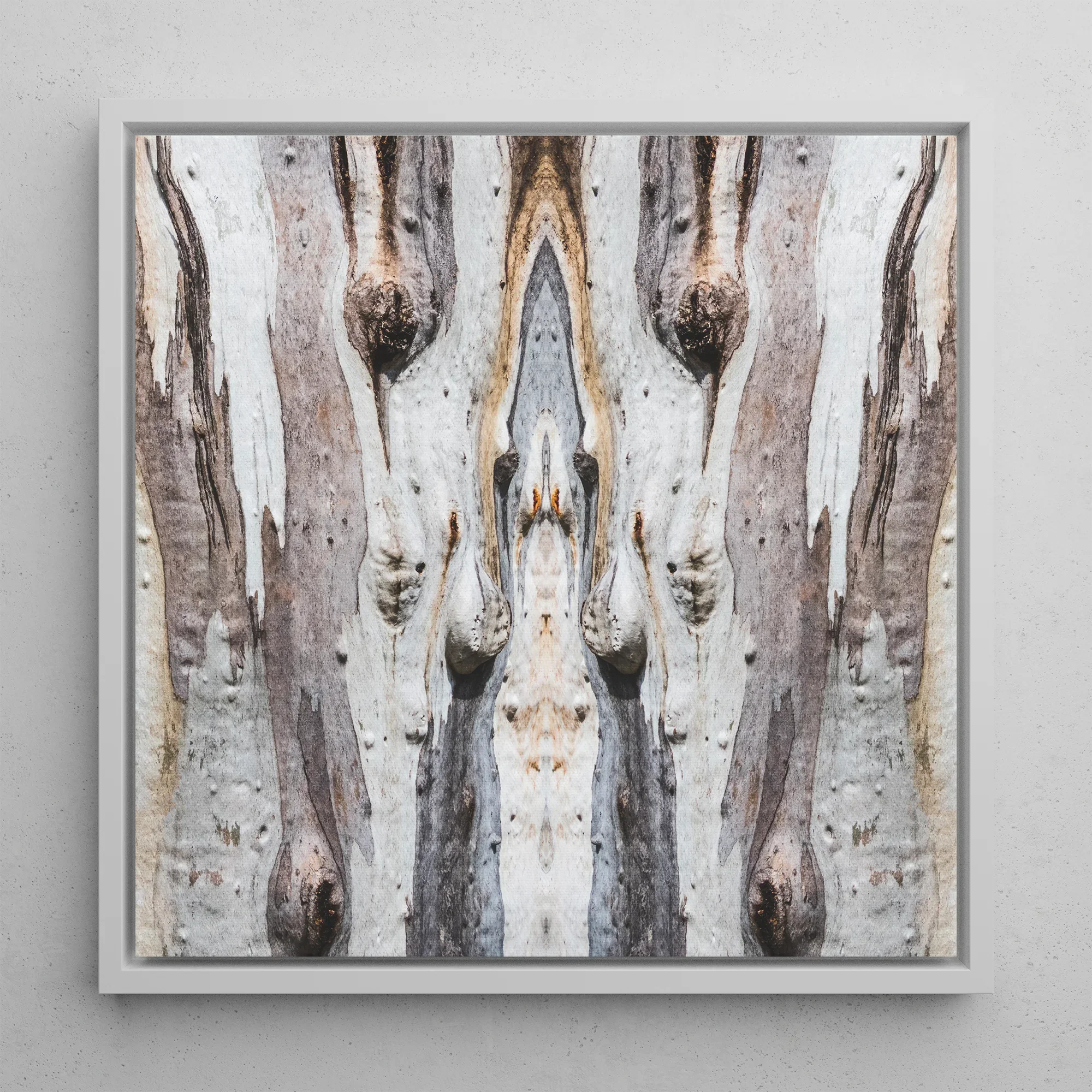 "Barking Mad" tripperen Tree Trunk Canvas overstijgt louter botanische weergave. Het aanbieden van een hypnotische reis naar het hart van boomontractie. Dit ingelijst canvas Verhoogt de Australische boomschors naar surrealistische hoogten, waardoor een Rorschach-achtige symmetrie ontstaat die perceptie uitdaagt.