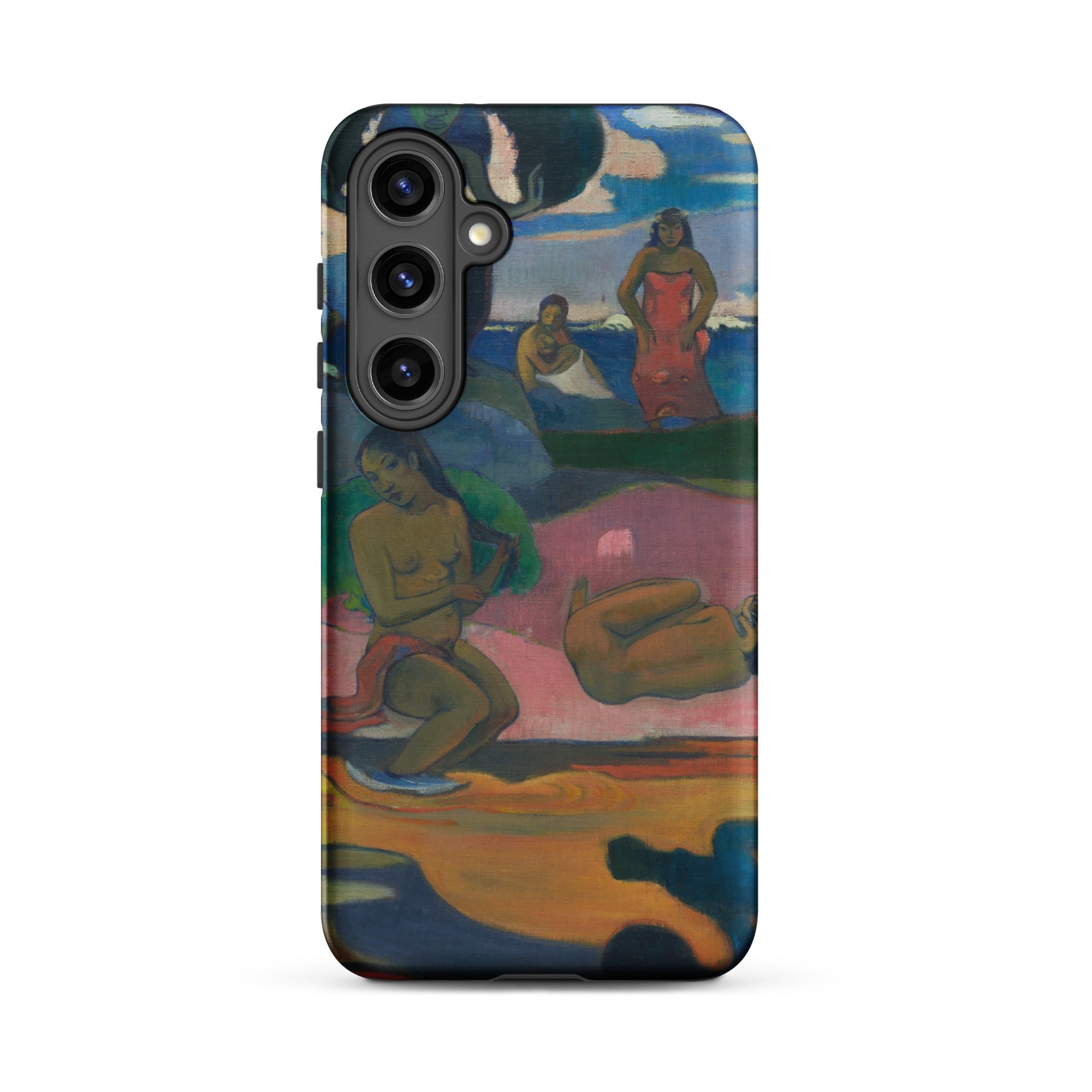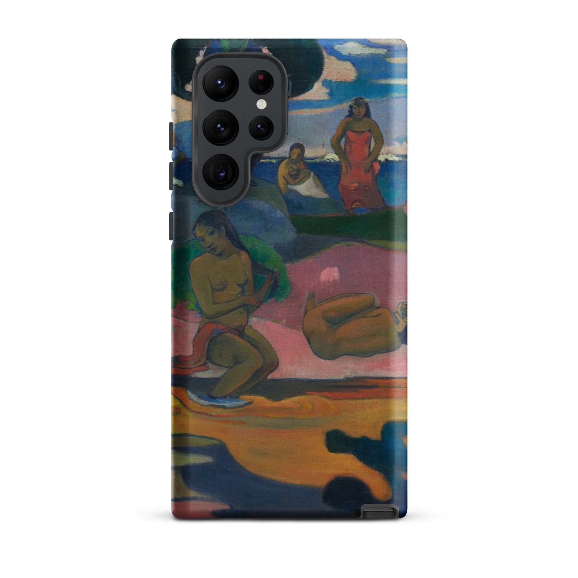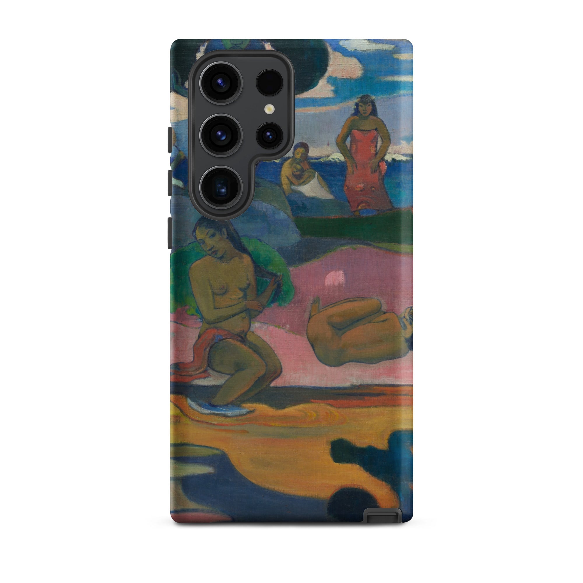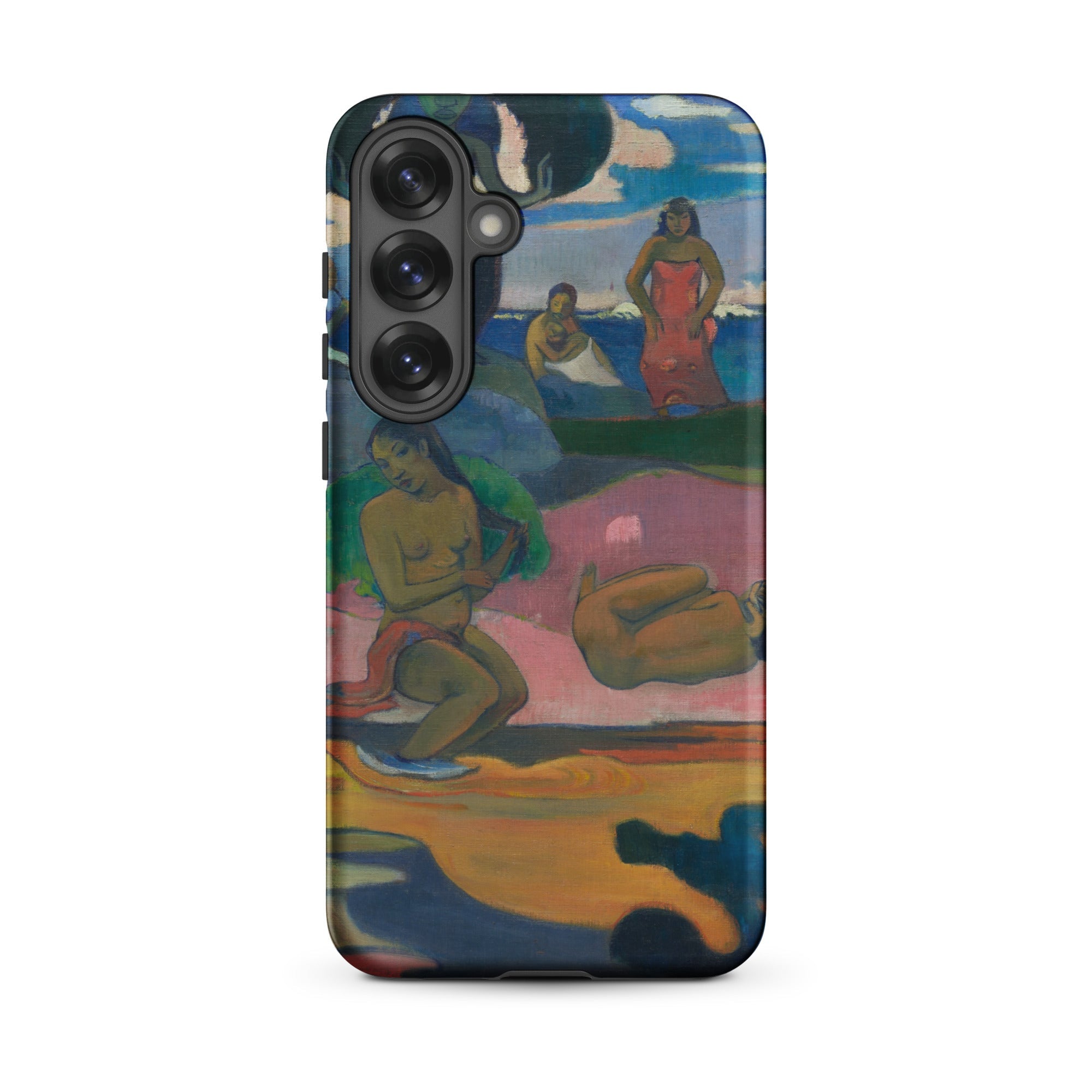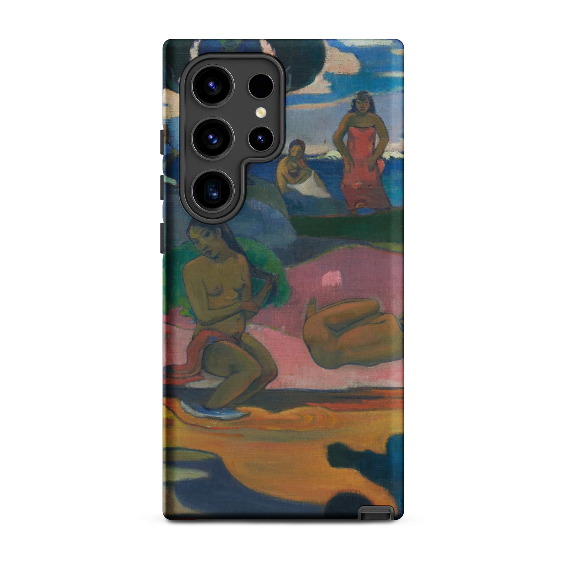 Deze Samsung-hoes vangt het elementaire ritme. Huid, zee en lucht samengevoegd tot één lumineus oppervlak. Beschermend maar rijk aan kunst, verandert het je apparaat in een poort voor Symbolistische kleur, Post-Impressionistische durf, en de tijdloze aantrekkingskracht van eilandrituelen onder een altijd veranderende lucht.