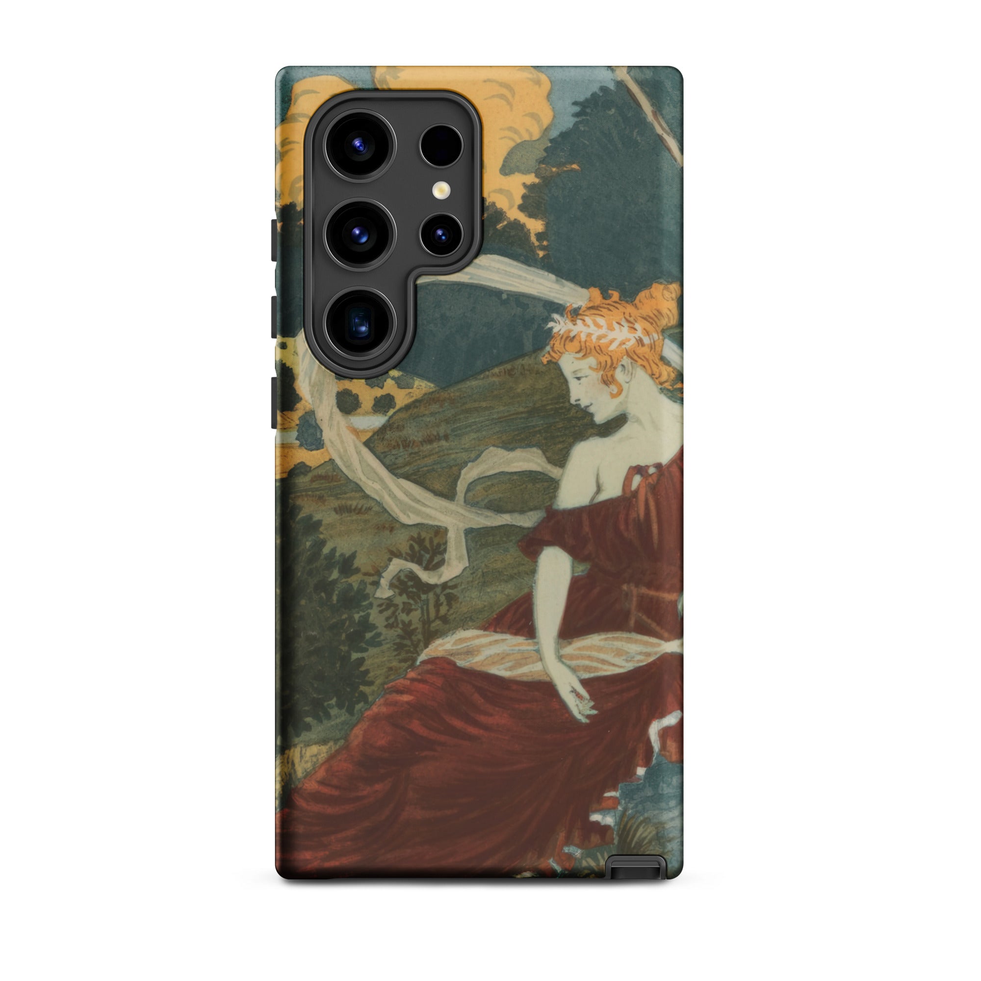 Deze Samsung hoes heeft sensuele details. Het behoudt de Zwitserse meester's eenheid van natuur, figuur en ornament in een draagbaar tafereel. Een alledaagse schat die verandert in een draagbare galerie. Het draagt de zachte theatraliteit van de salonmuur in het ritme van dagelijkse aanraking.