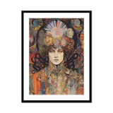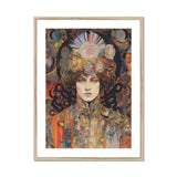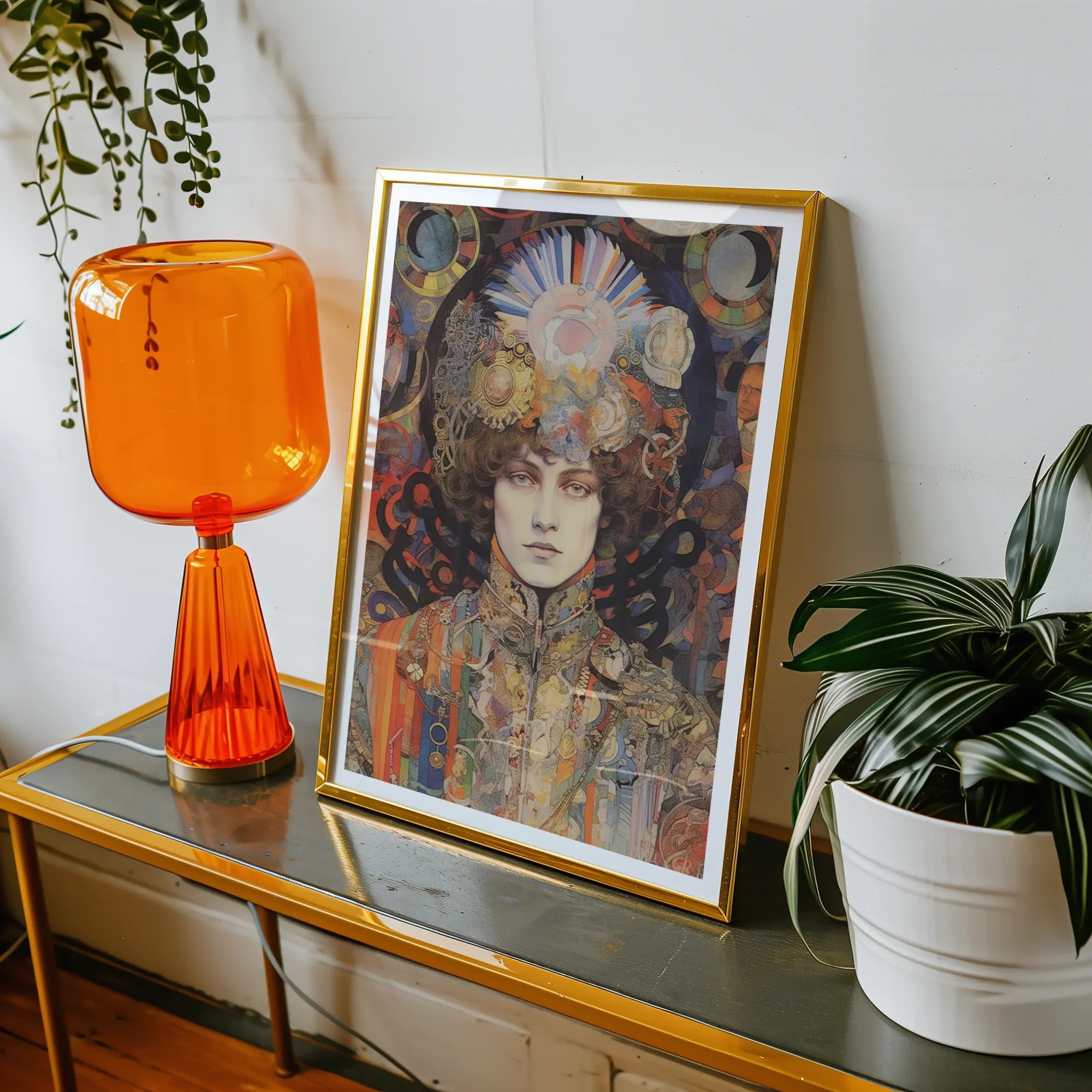 Je staart in de ogen van een kosmische keizerin, haar blik een portaal naar psychedelische rijken onverteld. Peper explodeert met retro-moderne fusie, een koorts in de jaren 60 voor je muren. Wervelend om haar heen, abstracte visioenen dansen - cirkelvormige portals, fractaal vlinders, een caleidoscoop van kleuren die Timothy Leary's hoofd spin zou maken.