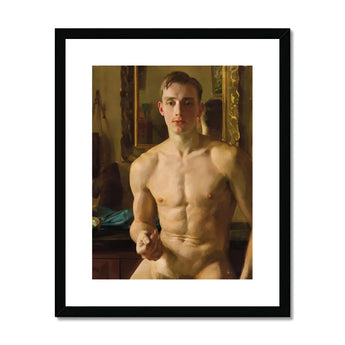 'The Boxer' van Konstantin Somov is een betoverend olieportret van Boris Snezhkovsky, een frequent model en muze voor de kunstenaar. Dit schilderij, een belichaming van de fascinatie van Somov voor licht en vorm, toont Snezhkovsky's spier lichaamsbouw in een naakthouding van een halve lengte. De stillevenelementen - een spiegel, een ladekast en bokshandschoenen - voegen lagen van verhalende en introspectie toe en bieden een kijkje in het dagelijkse leven van het model.