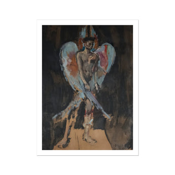 Bérard—bekend van samenwerkingen met Jean Cocteau en Coco Chanel—beeldt een mannelijk lichaam af dat zweeft tussen glorie en ondergang, schrift en queerness. Het zwaard dat hij vasthoudt is minder een wapen dan een last, een teken van onmogelijke verlossing. Deze print bewaart Bérard's nalatenschap als schilder van overtreding, theatraliteit en onaardse schoonheid.